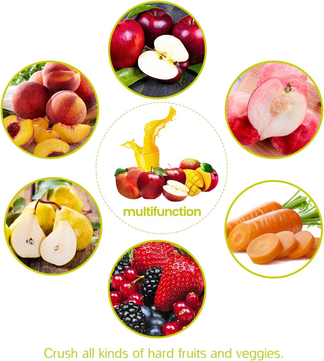 - Crush all kinds of Hard Fruit & Veggies - Unique more gears alternately,crush hard fruits and veggies much better.Such as apples,pears,peaches carrots and so on.