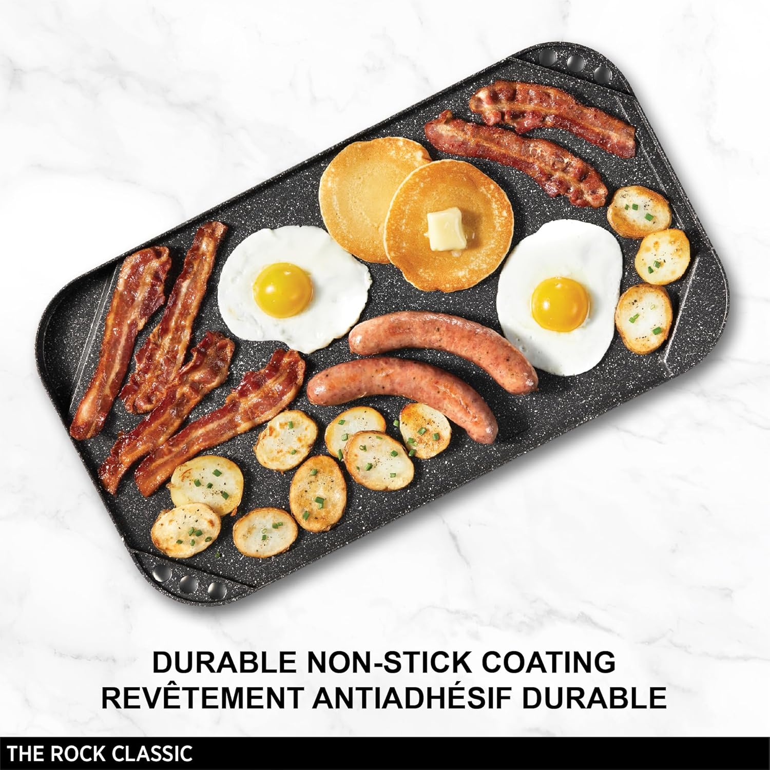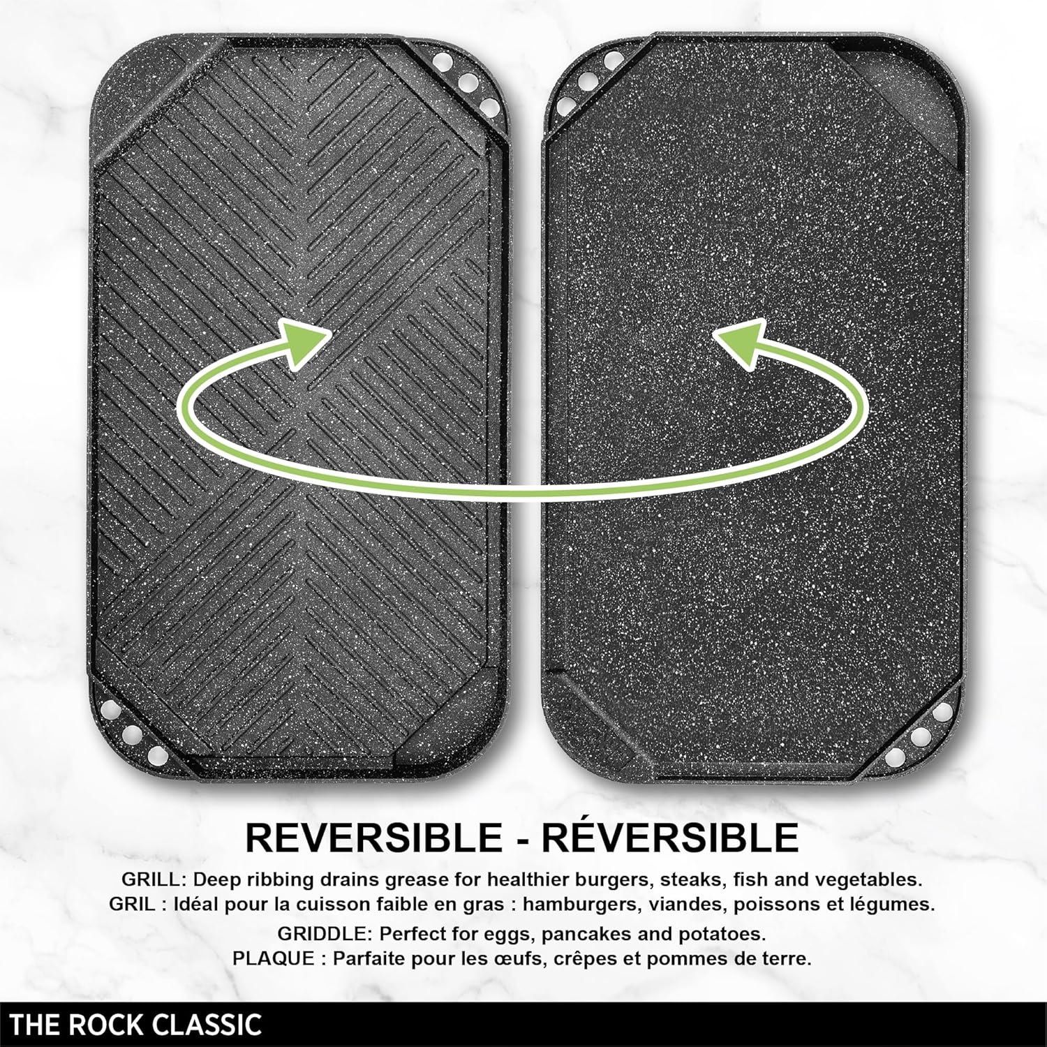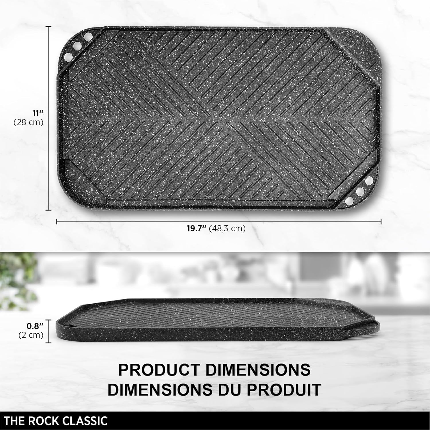 Starfrit The Rock 50x28cm (19.7" x 11") Non-Stick Reversible Grill & Griddle - Durable Forged Aluminum - Oven Safe - PFOA Free - Easy to Clean - Black