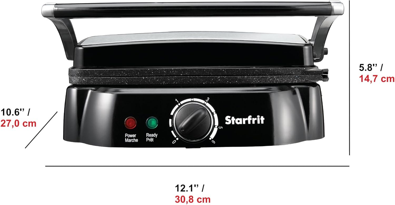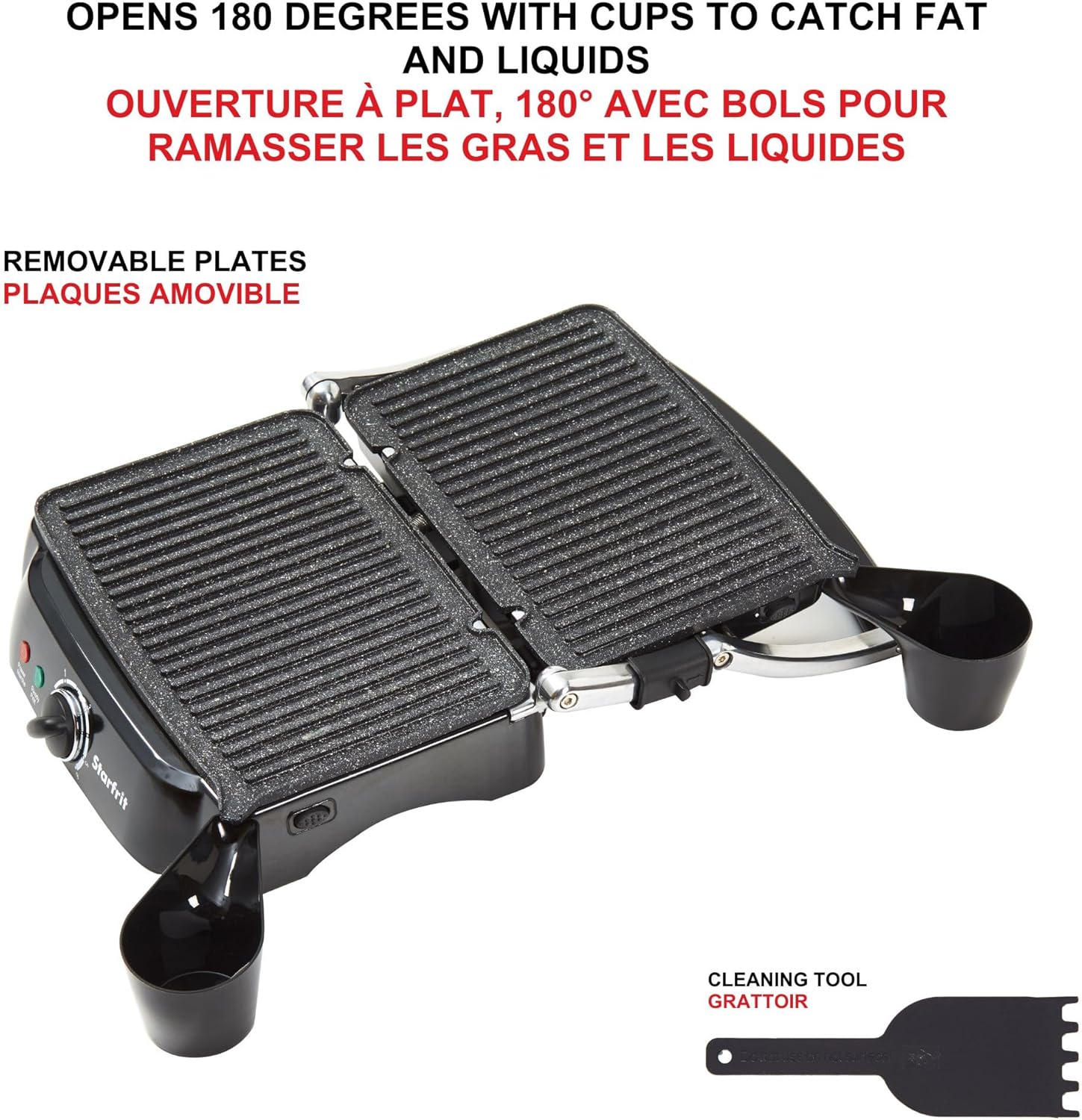 Starfrit The Rock Panini Press - Rock.Tec Non-Stick Reversible Plate - Opens 180 Degrees - Adjustable Temperate Control