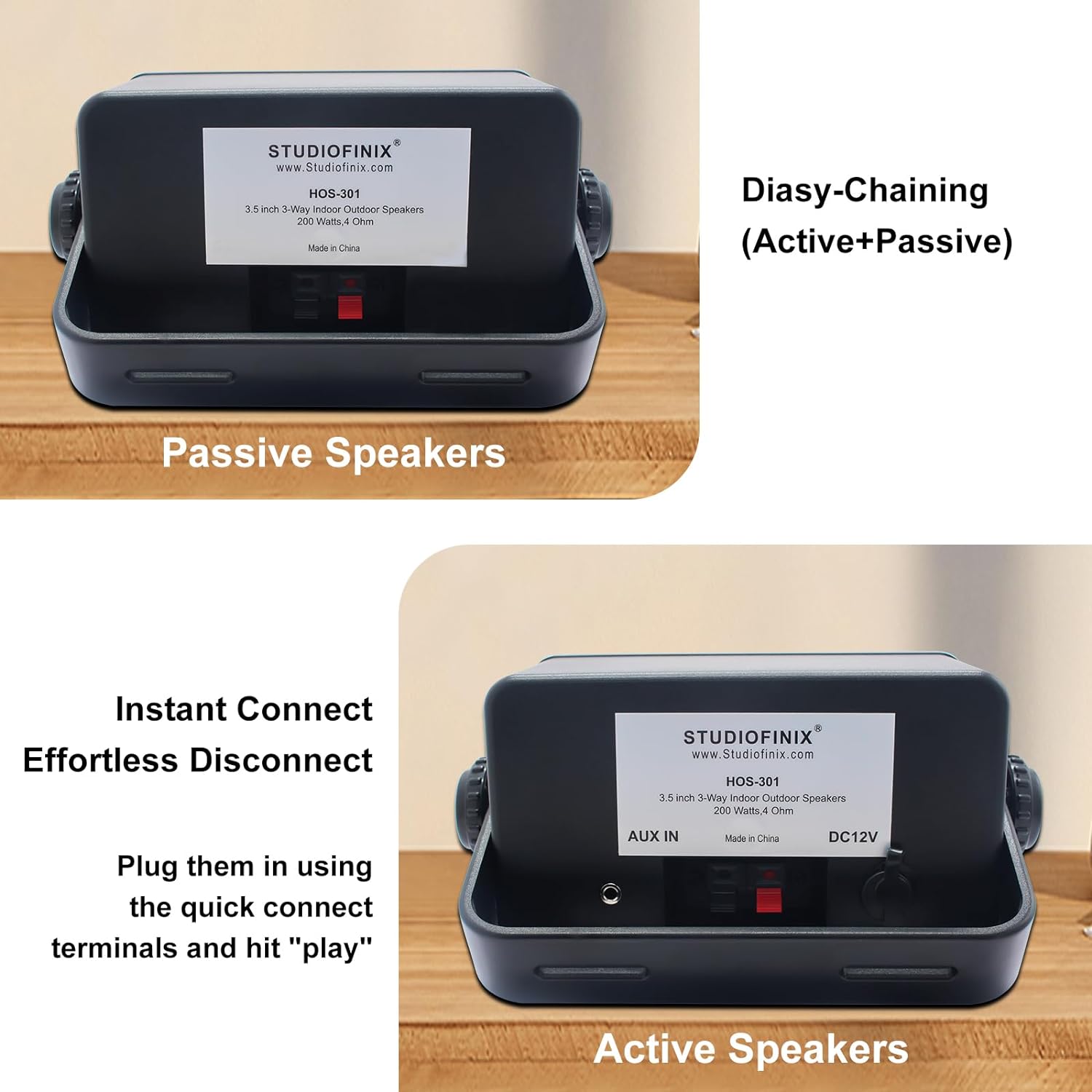 STUDIOFINIX Outdoor Bluetooth Speakers -3.5 Inch Pair 3-Way 200W,Wall Mount Waterproof Marine Speakers,Heavy Duty Grill, Suitable for Home, Boat, Patio, Indoor Outdoor Use (Black)