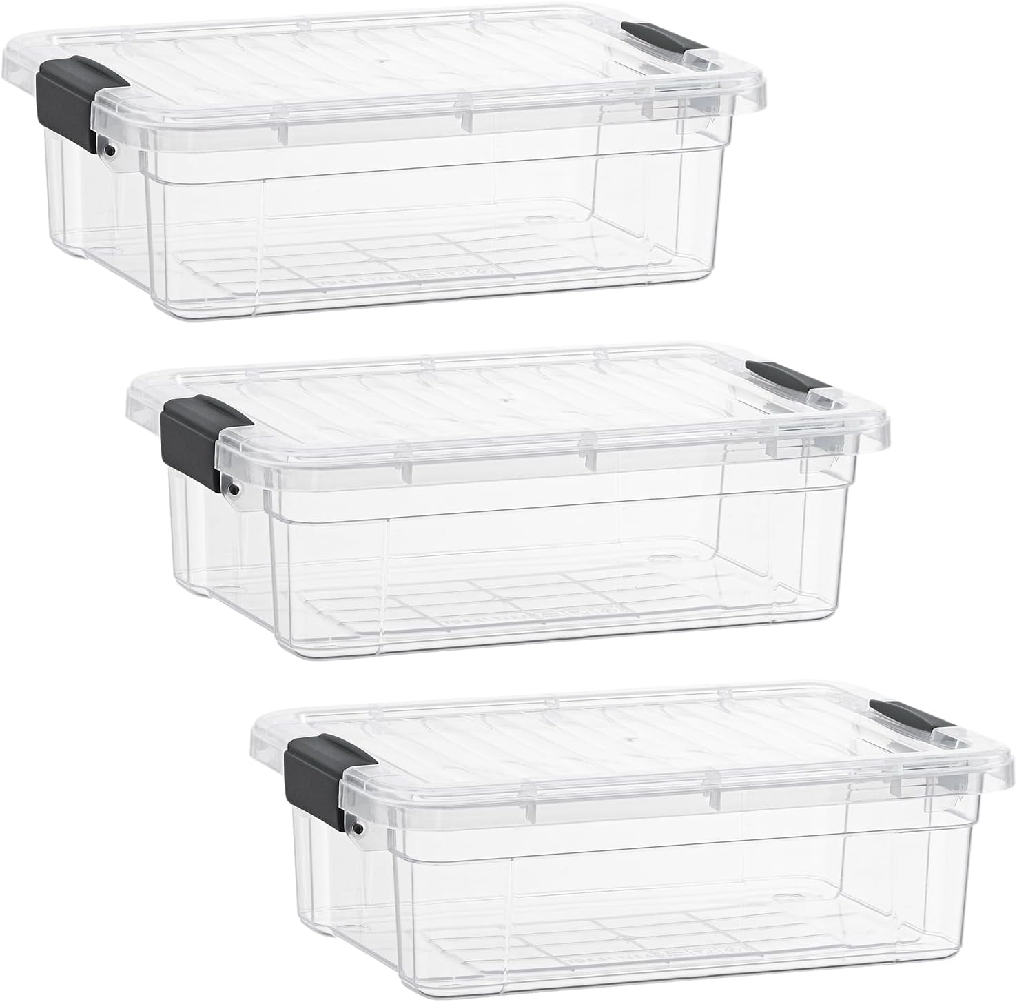 Superio Storage Bins with Lids- 3 Pack, 1.85 Qt Clear Boxes for Organizing, Stackable Plastic Containers- BPA Free, Non-Toxic, Odor Free, Organizer for Home, Office, DormPL17-B0C799KCKJ