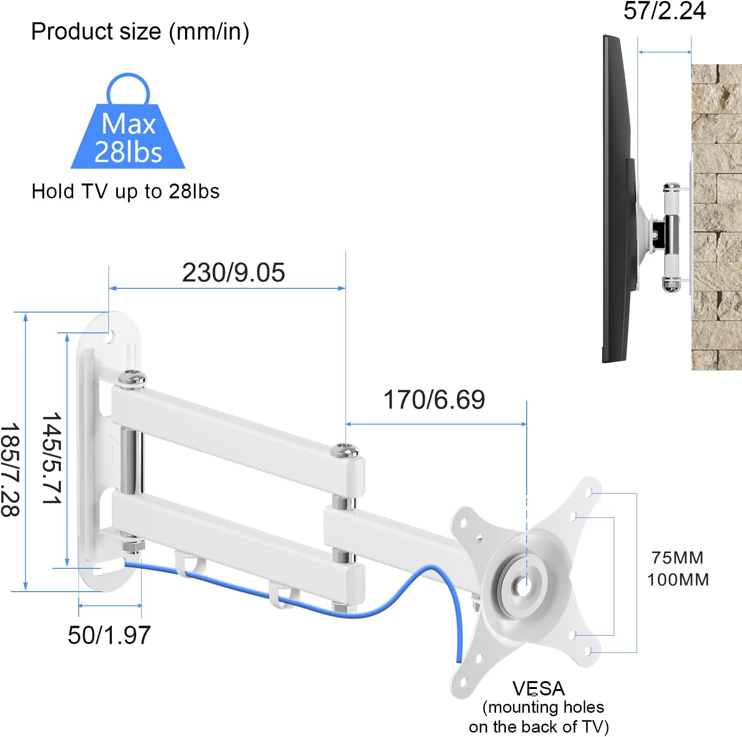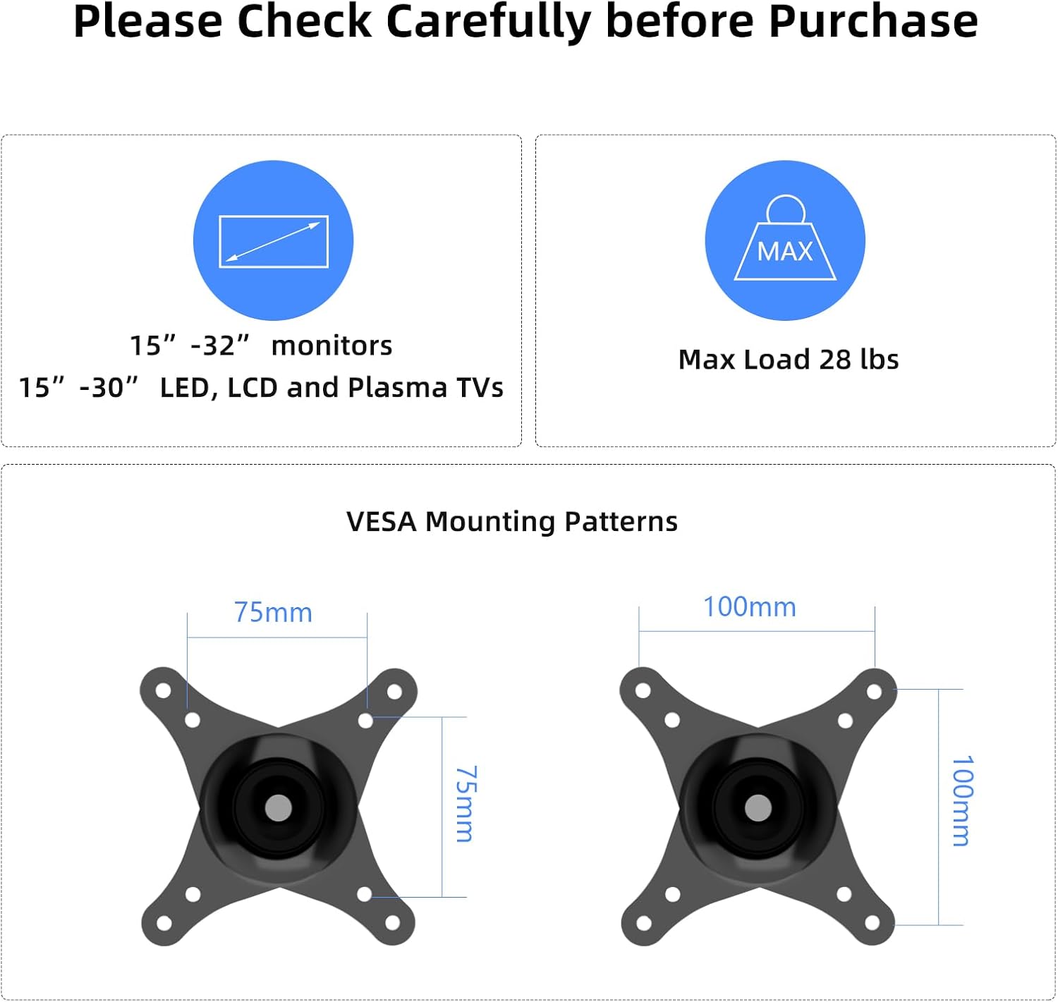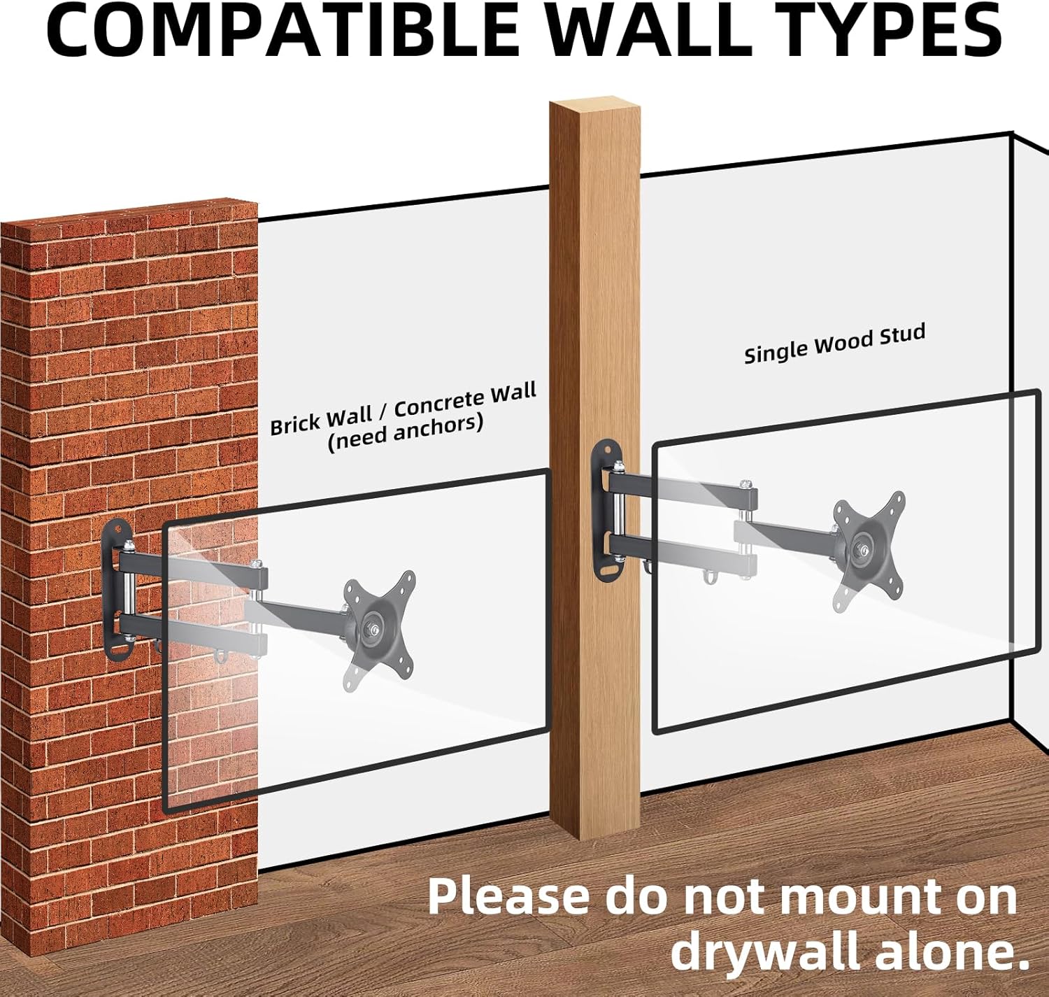 - Compatibility - compatible with VESA 75x75mm and 100x100mm, fits for concrete wall/wood stud
