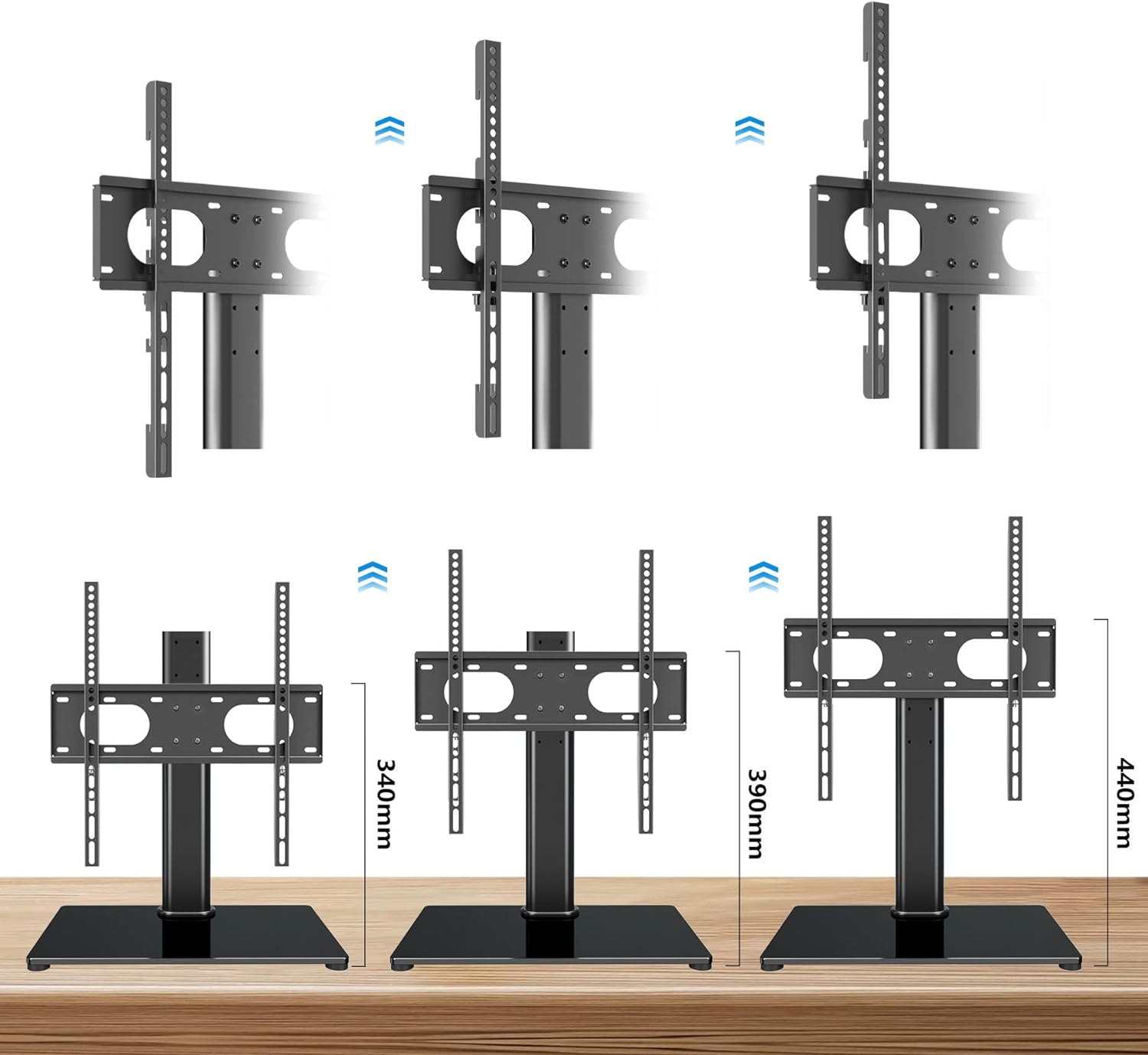 - Suptek Universal TV Stands, Table Top TV Stand, Pedestal TV Stand for Most 17"-55" Screens, Height Adjustable TV Base Stand with Tempered Glass Base and Wire Management, Hold up to 40kg, VESA 75/400mm