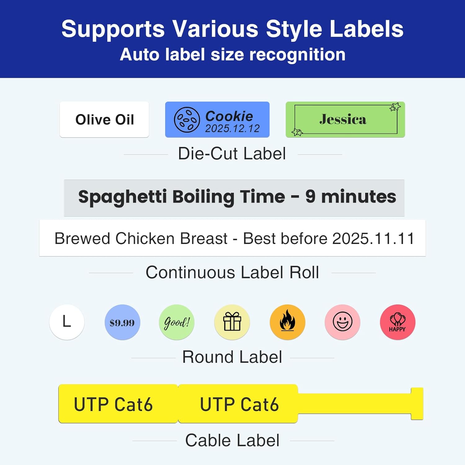 - Wide Label Compatibility: Works with continuous labels, fixed-size labels, and cable labels; ideal for long content, batch printing, and cable identification