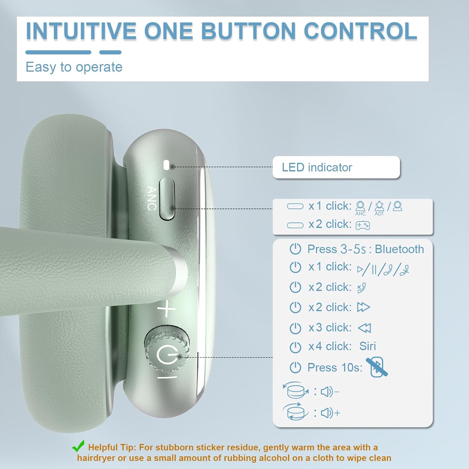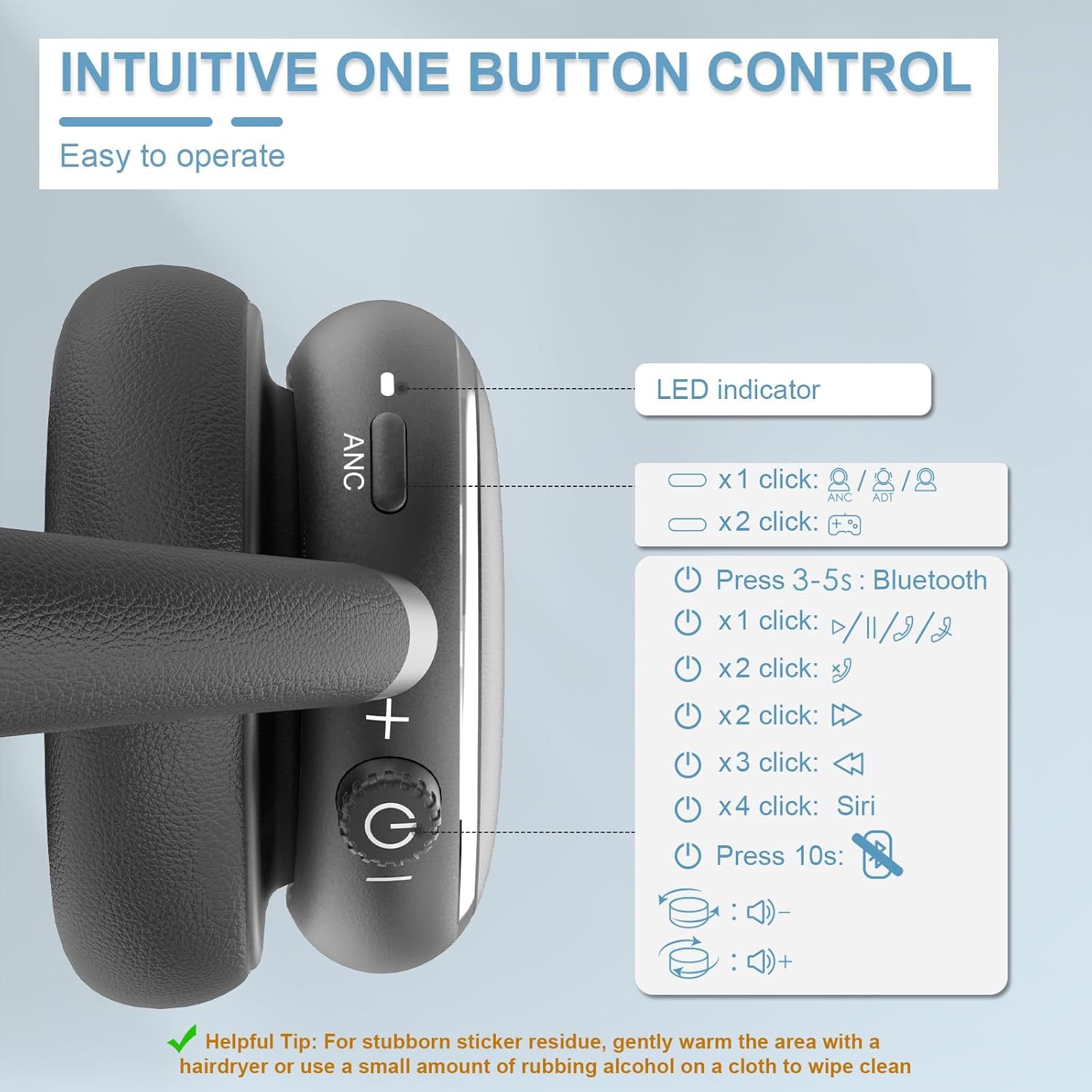 - Creative Volume Knob Control: The controls on the NC95 headphones appear minimalist. One control with a rotating and pressable dial. The volume is easy to adjust by rotating the dial knob, while pressing the knob lets you play/pause music or answer a phone call, and more. The other control is a single button that toggles between transparency mode and ANC on/off. Note: Knob function and ANC mode are only for wireless connection