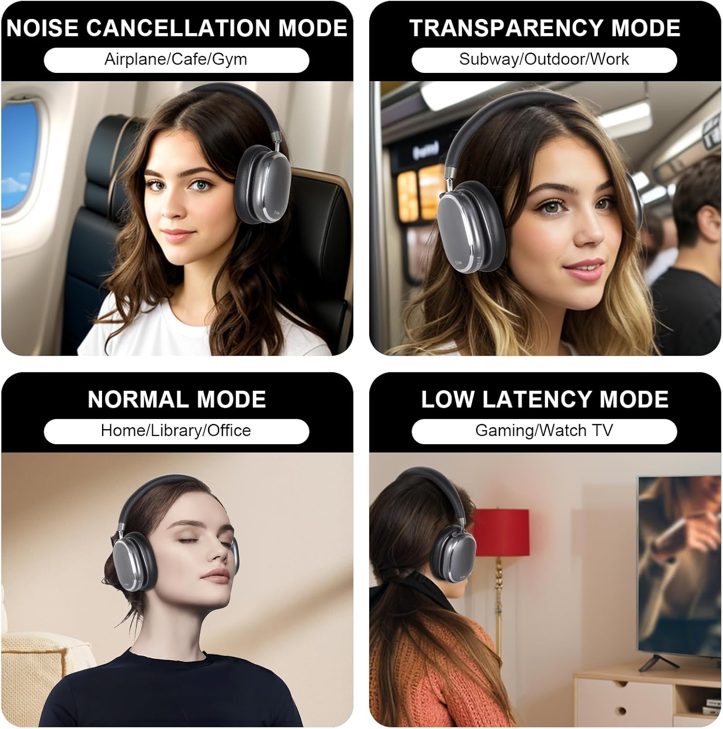 - Hybrid Active Noise Cancellation & Transparency Mode: Advanced new digital technology that effectively reduces ambient noise by up to 35dB in various situations, such as traffic, offices, and schools, T-fun NC95 noise cancelling headphones providing an immersive audio experience in your music, podcasts, or calls. Transparency mode amplifies surrounding sounds to increase environmental awareness, allowing you to hear ambient sounds without removing the headphones