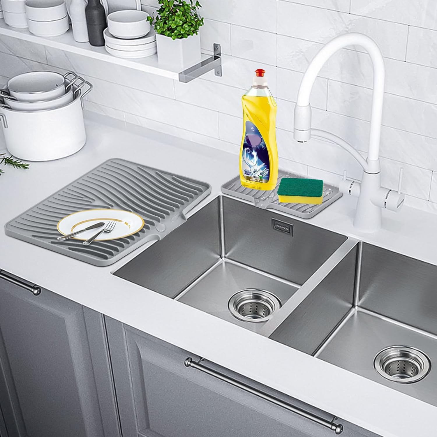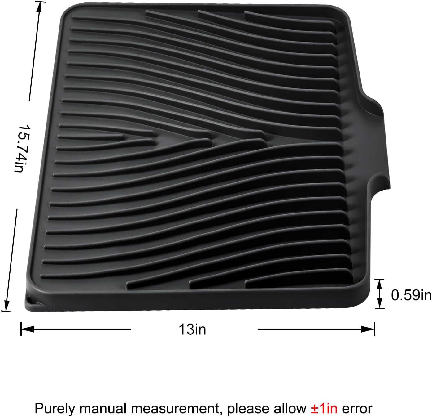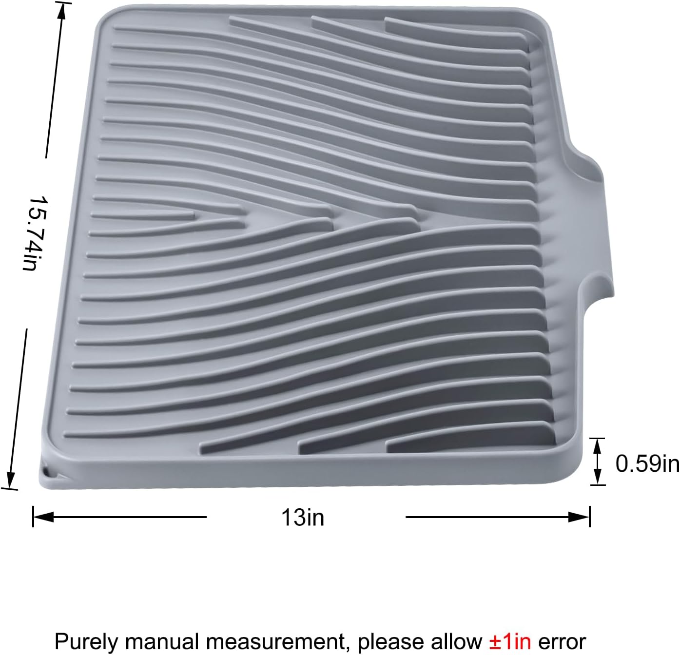 TIKNIK Silicone Dish Drying Mat for Kitchen Counter, Dish Drying Pad, Non-Slip Drain Pad with Built-in Drain, Heat Resistant Stone Drying Mat(40 L x 33 W cm, Grey)