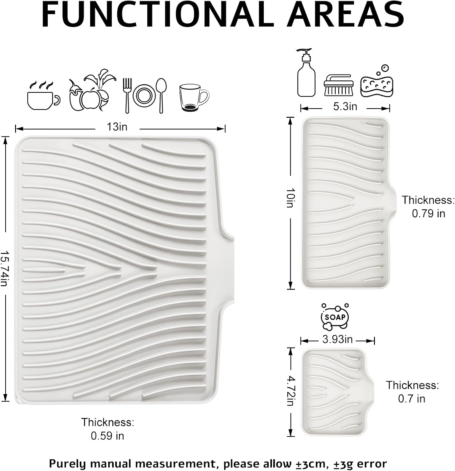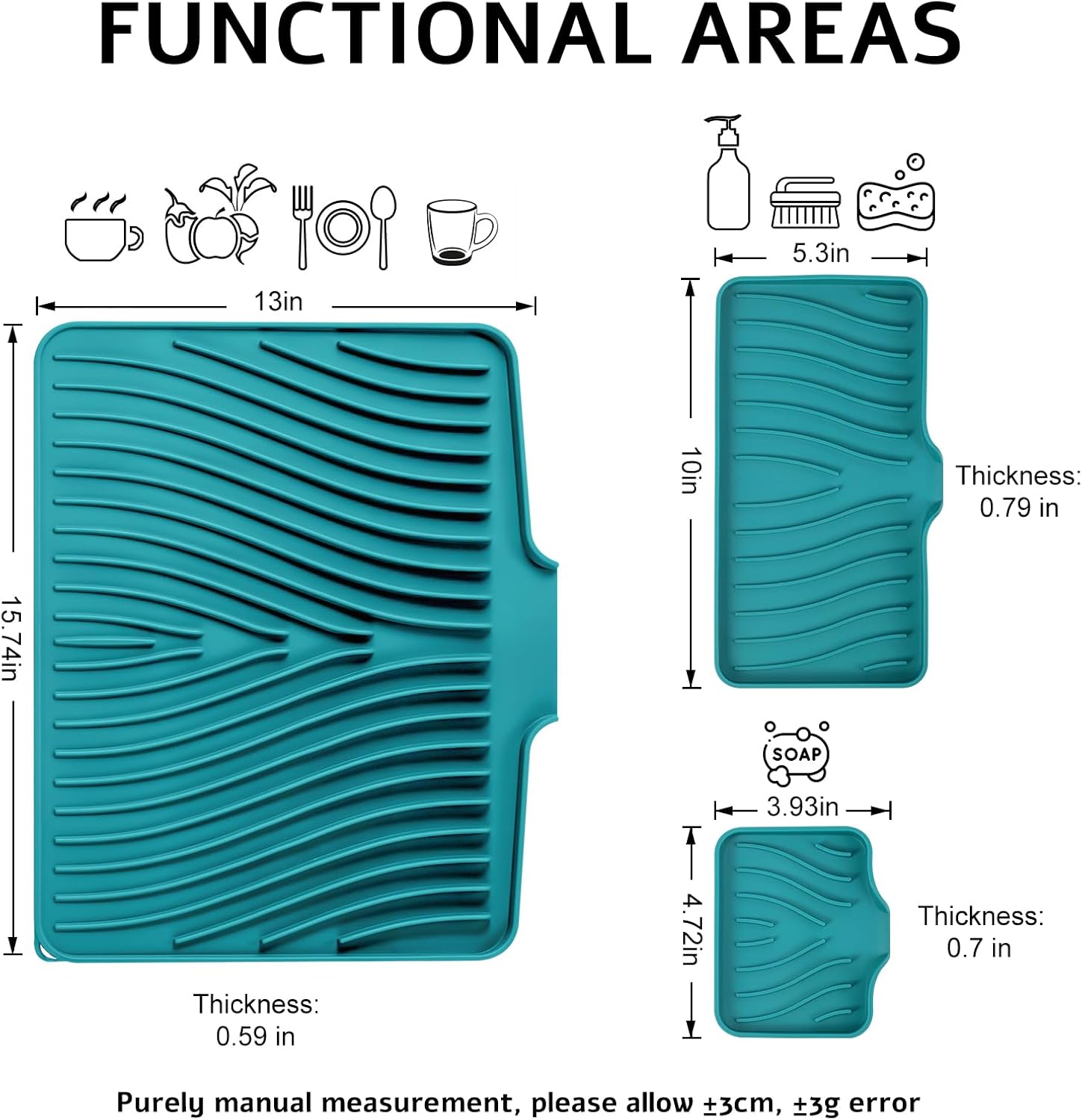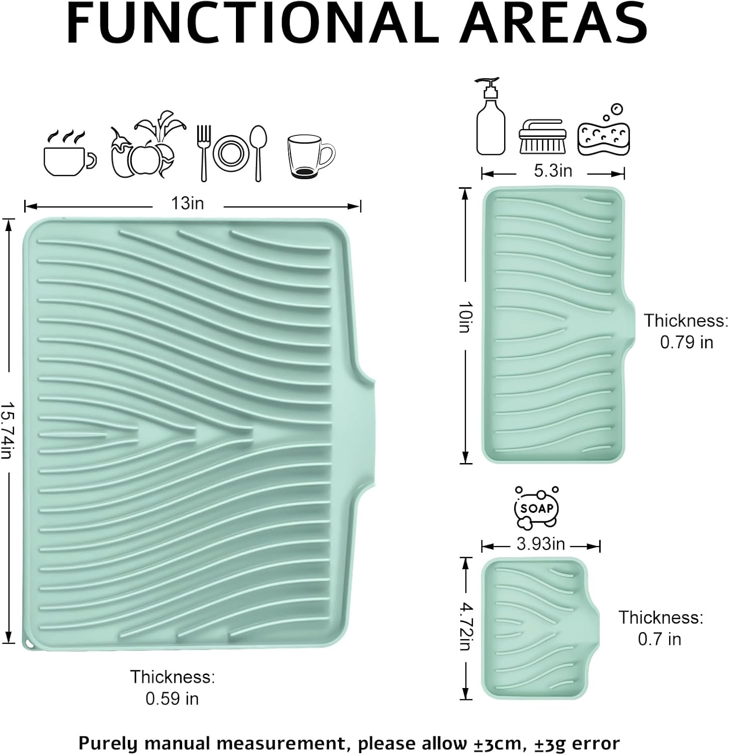 - Food-grade silicone material: TIKNIK silicone drain mat is made of environmentally friendly food-grade silicone, does not contain BPA, is durable, soft, heat-resistant, non-slip, foldable and not easy to deform, so you have clean and healthy tableware. Enjoy the peace of mind of a cleaner and more hygienic kitchen space every time you use it.