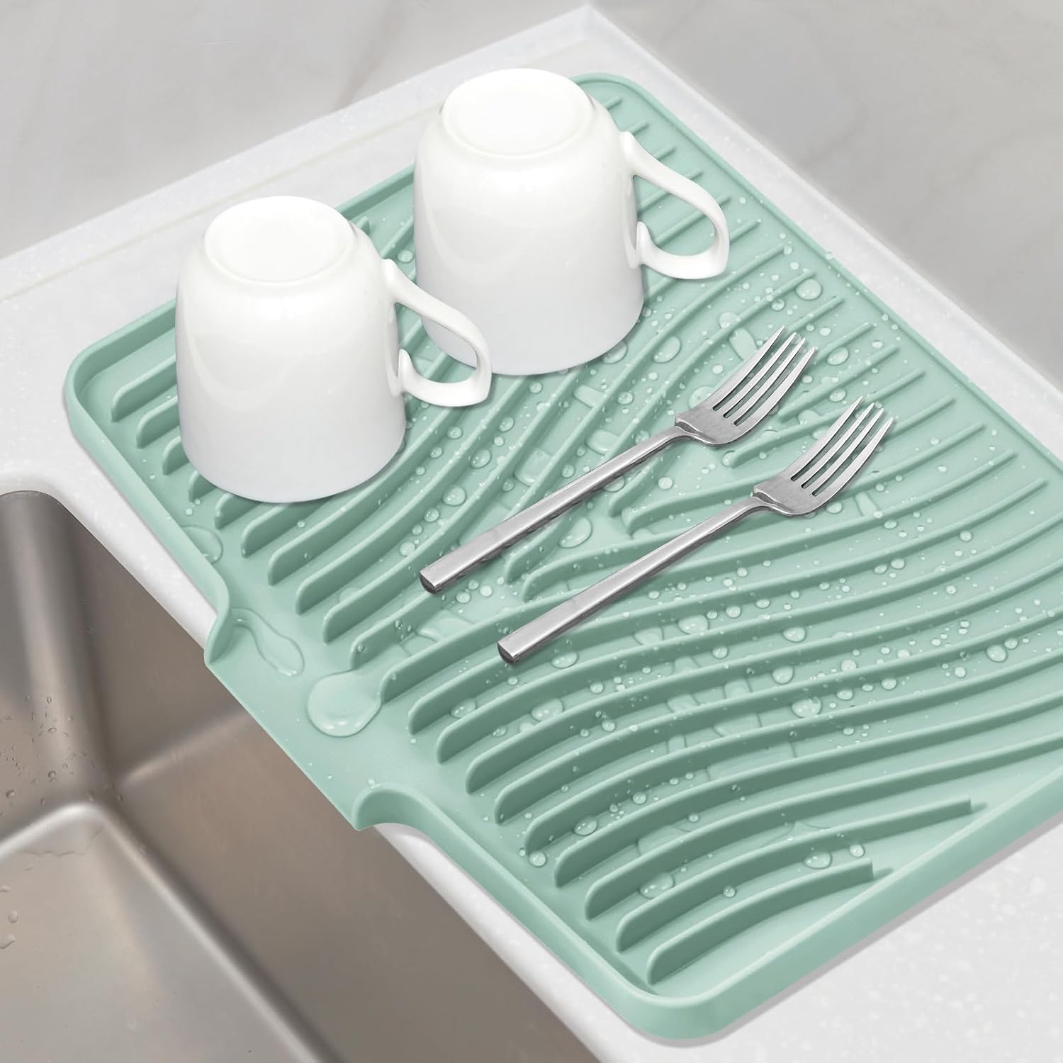 - Anti-slip & heat-resistant: TIKNIK non-slip easy clean sink mat has an anti-slip effect, which prevents tableware, vegetables, fruits and glassware from sliding off. It is also an excellent heat-resistant silicone dish drying mat that protects it from high temperatures up to 450°F/230°C, while protecting countertops and tables from hot pots or electrical appliances.