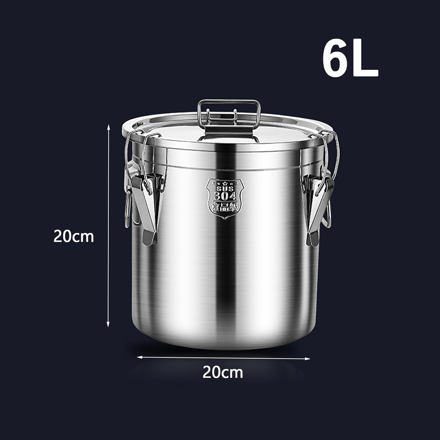 TRAGLO Rice Cereal Grain Canisters Stainless Steel Airtight Canisters Food Storage Bucket w/Handles+Lid for Kitchen Bean Flour Oil Sugar Milk 6L
