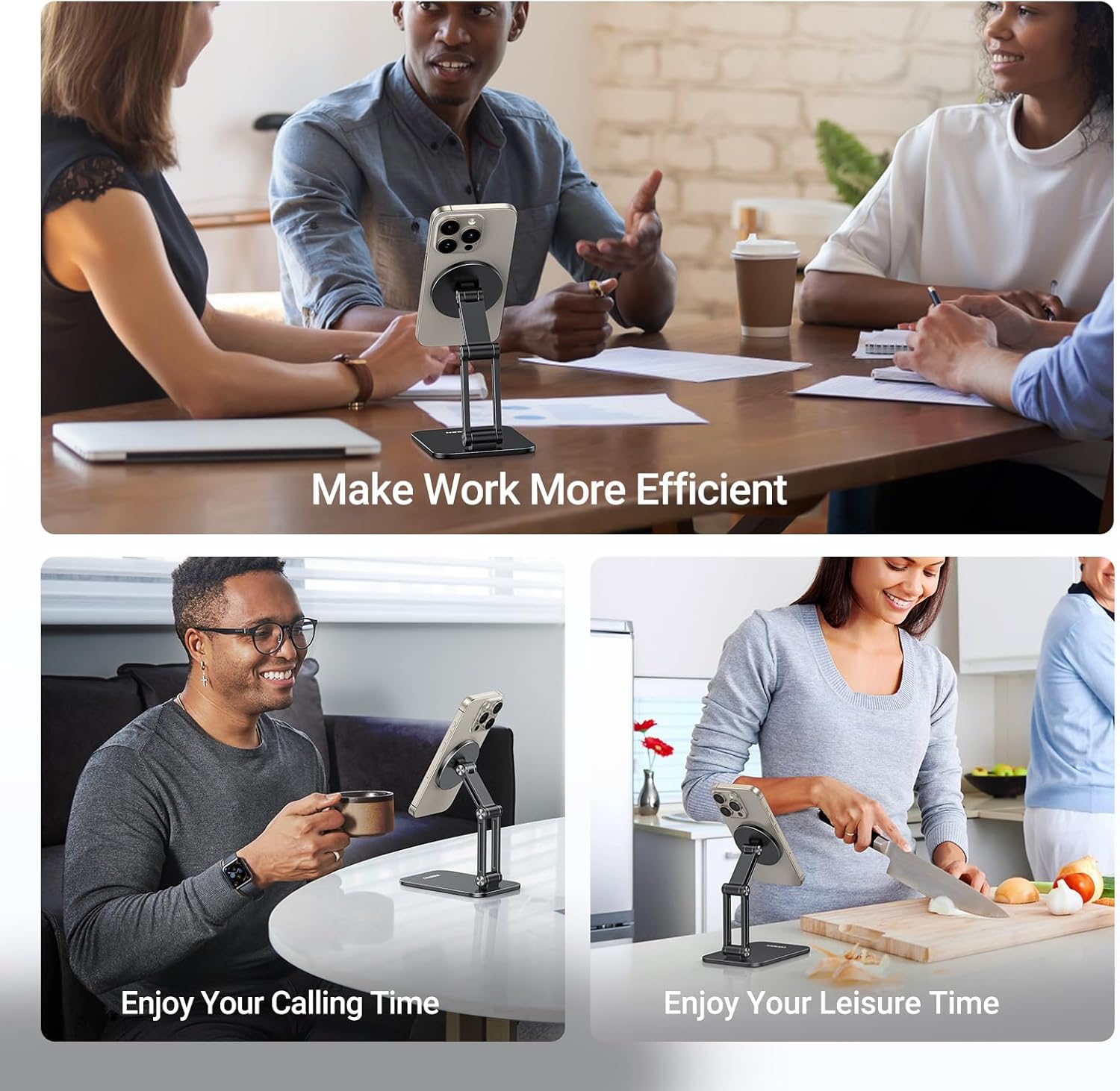 - Suitable for Most Phones: The magnetic cell phone stand can be used directly for the iPhone 16 15 14 Pro Max 13 12 series and MagSafe cases. The magnetic metal ring included in the package can be attached to iPhone 11 and below, Android phones, and cases for a MagSafe effect that keeps your phone completely steady and stable