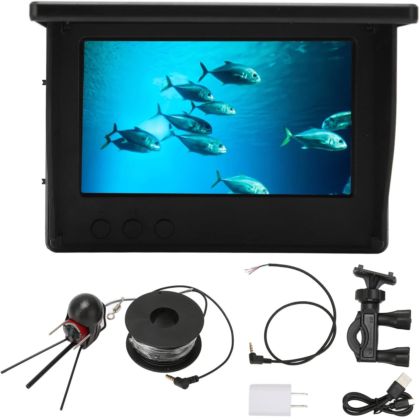 Underwater Fishing Camera, Portable Fish Finder Waterproof Camera 1000TVL Underwater Camera with 12 IR LED Lights, 4.3 Inch LCD Monitor, for Lake Sea Boat Kayak Ice Fishing (30m / 32.8yd US Plug)
