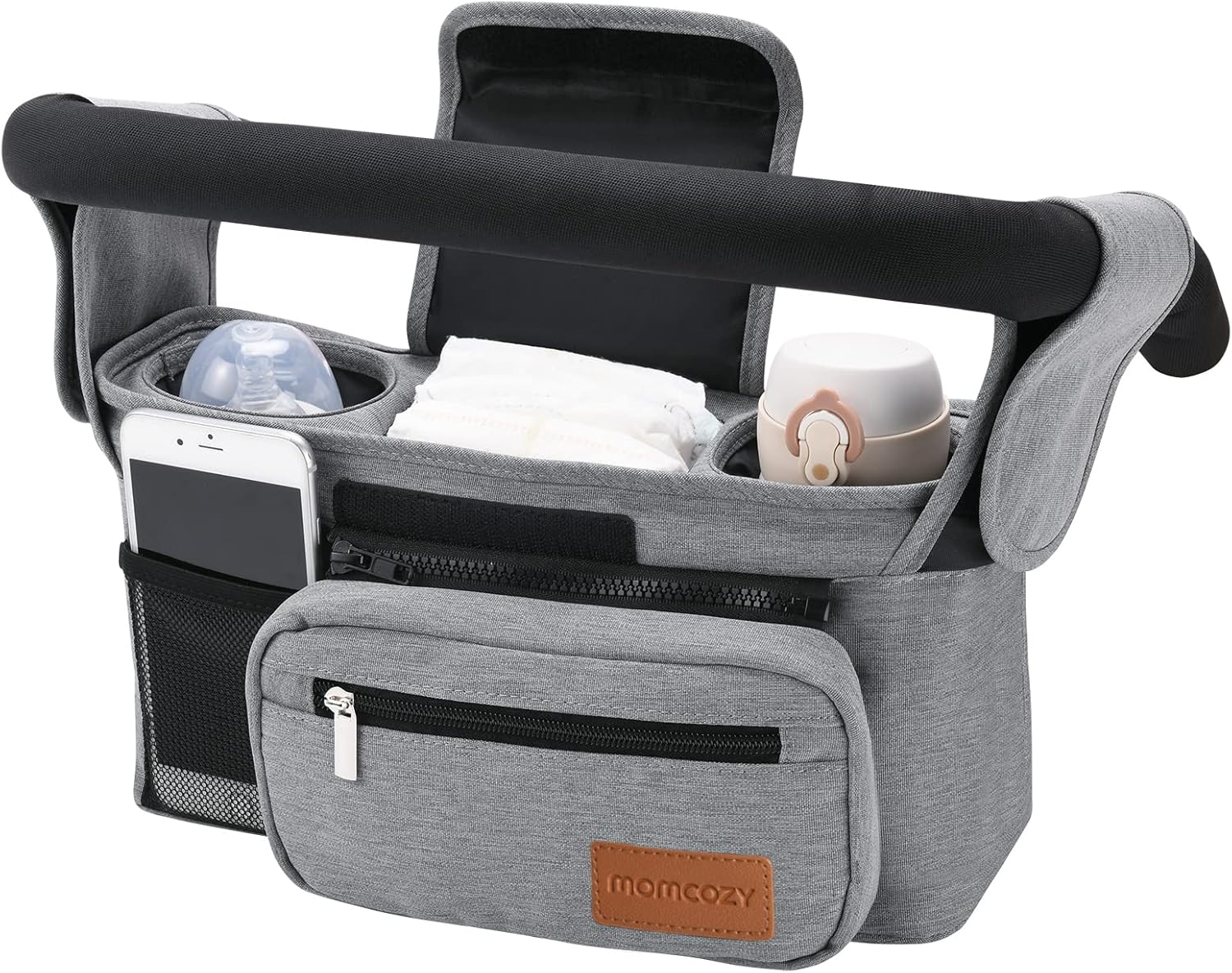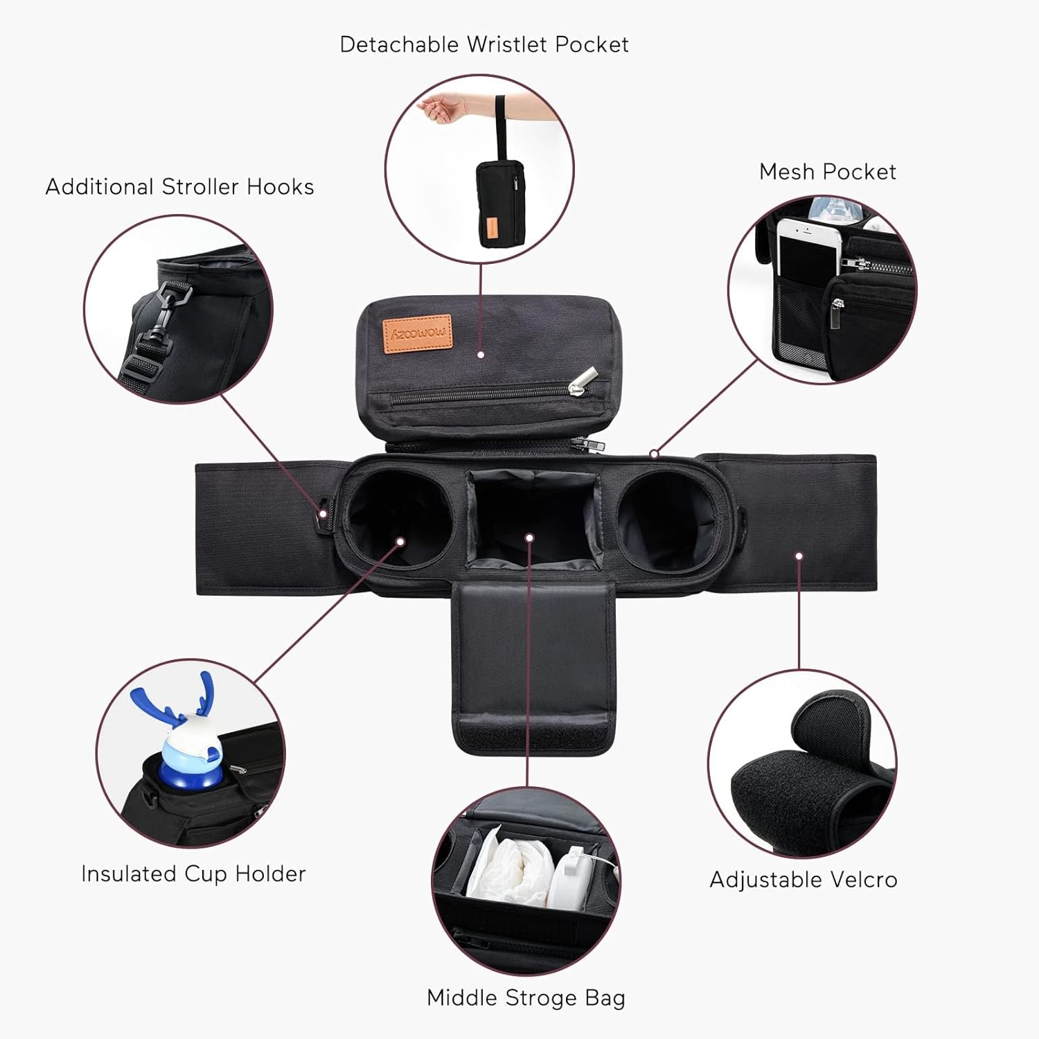 Universal Stroller Organizer with Insulated Cup Holder by Momcozy - Detachable Phone Bag & Shoulder Strap, Fits for Stroller like Uppababy, Baby Jogger, Britax, BOB, Umbrella and Pet Stroller