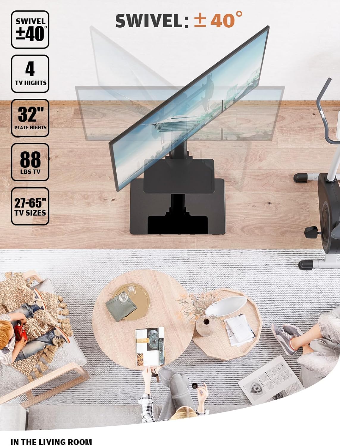- Universal TV Stand with Mount 80 Degree Swivel Height Adjustable and Tilt Function for 27 to 65 inch LCD, LED OLED TVs,HT1002B