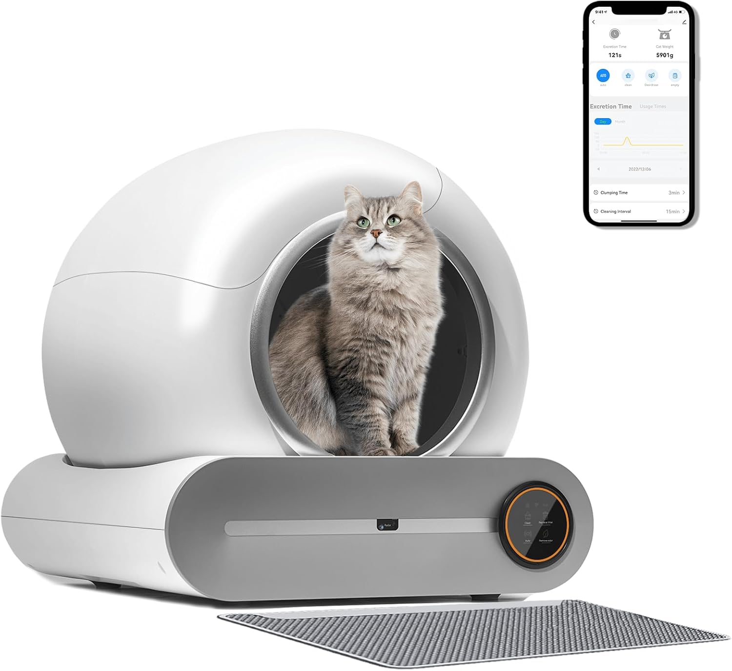 Upgraded Self-Cleaning Cat Litter Box - Automatic Smart for Multiple Cats, Never Scoop Again, Safety Protection, APP Control, Odorless, Health Check