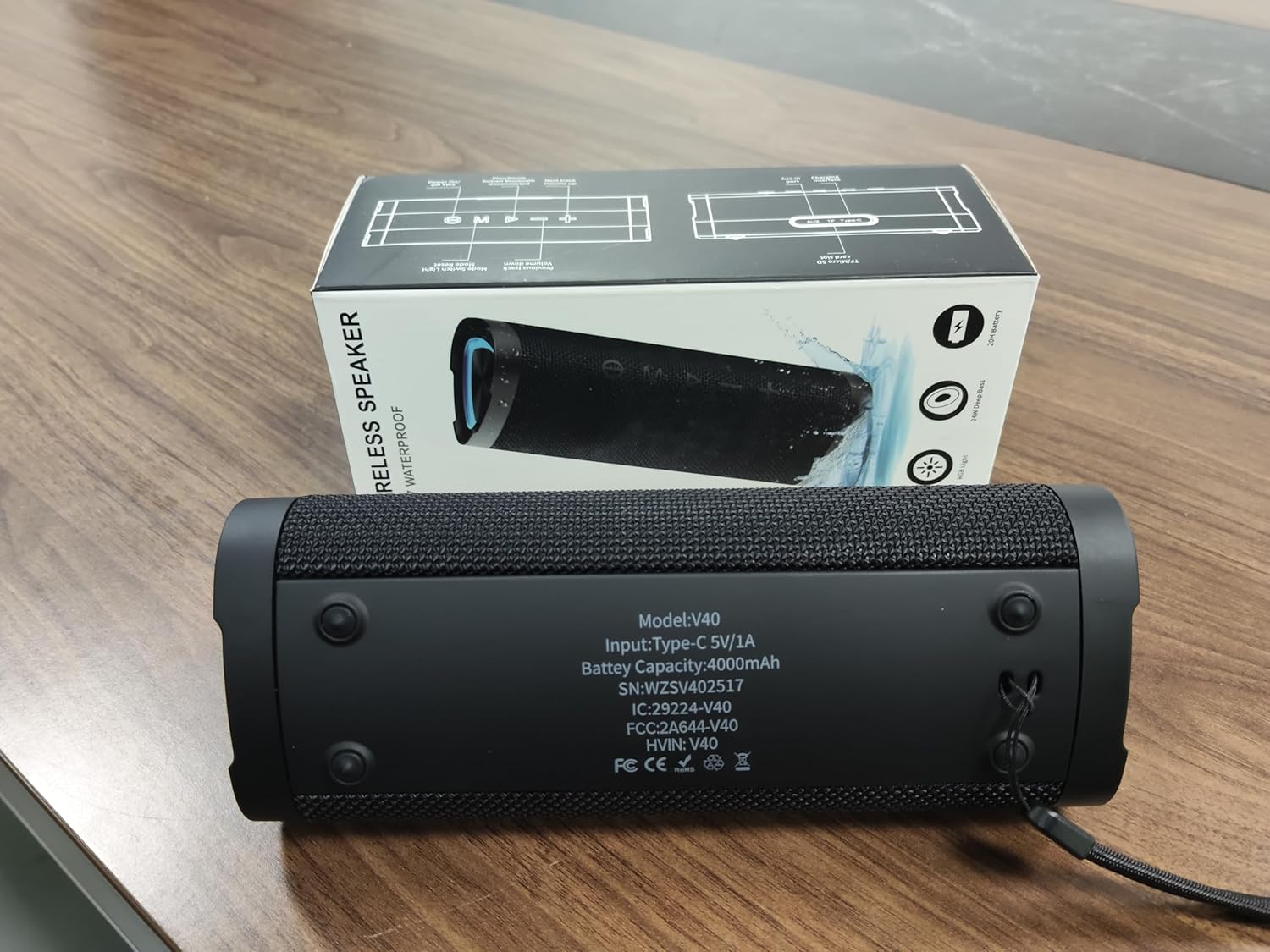 - đ”ăIPX7 STRUCTURE WATERPROOFăïŒThe V40 Portable speakers provides strong waterproof protection,and durable silicone case and port cover make the speaker have better internal protection, allowing you to enjoy music in a variety of different environments,even in outdoor, you don't have to worry at all,and our Bluetooth speakers come with RGB lights that will truly bring you a party atmosphere while you enjoy music. When you don't need to use it to play music, you can turn it on as an LED light.
