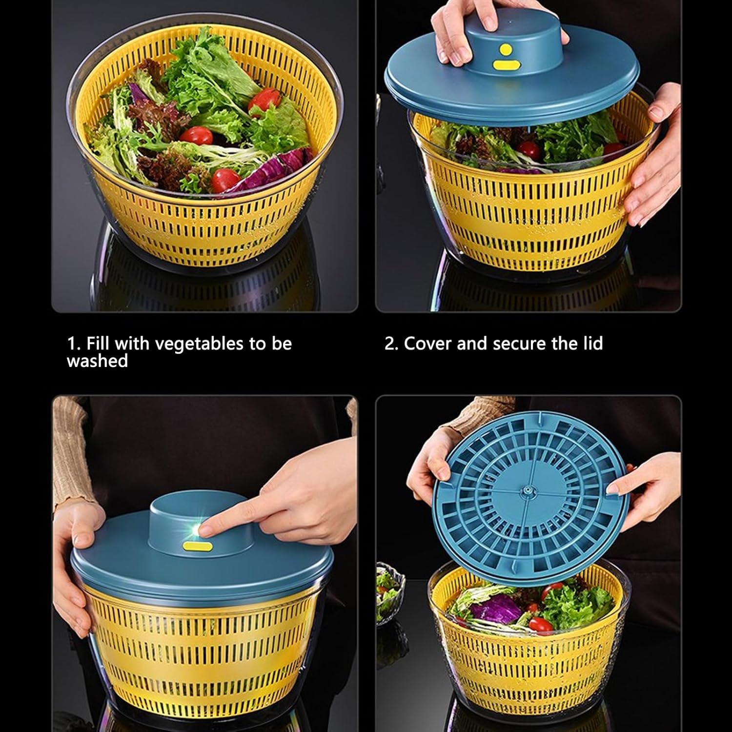 Vegetable Washing Machine Kneading Bowl, Multifunctional Spinner Dryer Vegetable Dryer Salad Mixer Salad Spinner Lettuce Dryer for Home Kitchen (Blue)