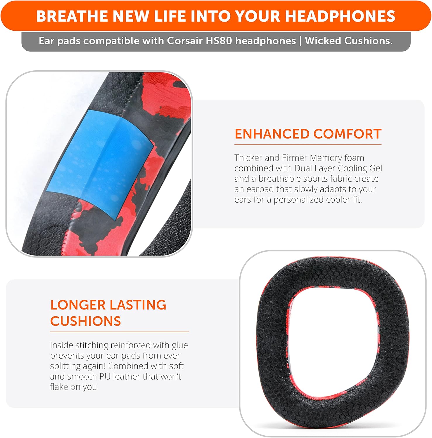 •  Experience the FreeZe: Transform your gaming sessions with WC FreeZe cooling gel ear pads designed for Corsair HS80 RGB Wireless & Wired Headsets. Dual Layer cooling gel (interior layer, top layer) combined with a breathable hybrid of sports fabric and leather ensure lasting coolness and comfort.