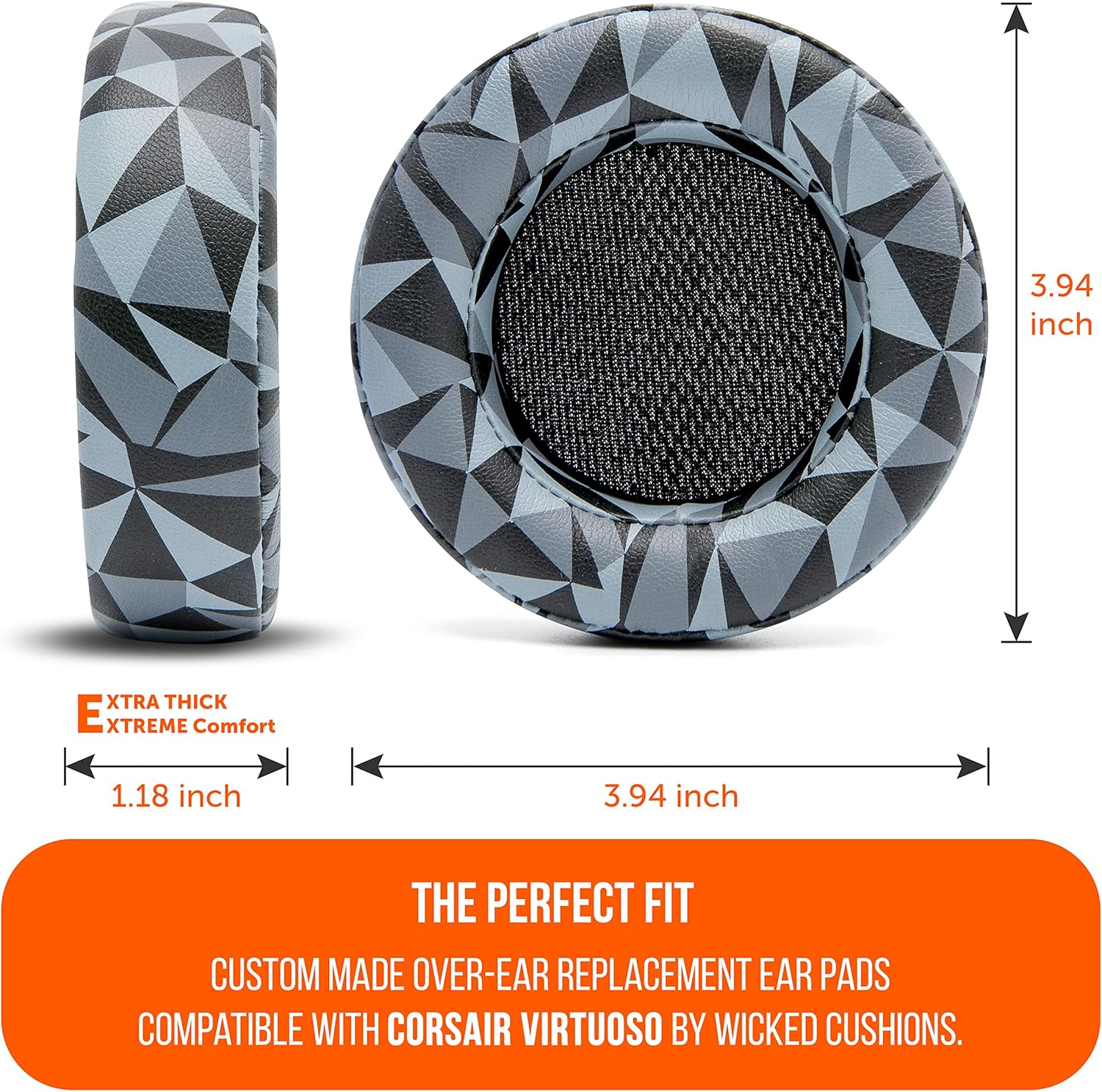 WC Upgraded Replacement Earpads for Corsair Virtuoso RGB Wireless Gaming Headset Made by Wicked Cushions | Improved Durability, Thickness, Softer Leather, and Sound Isolation | (Geo Grey)