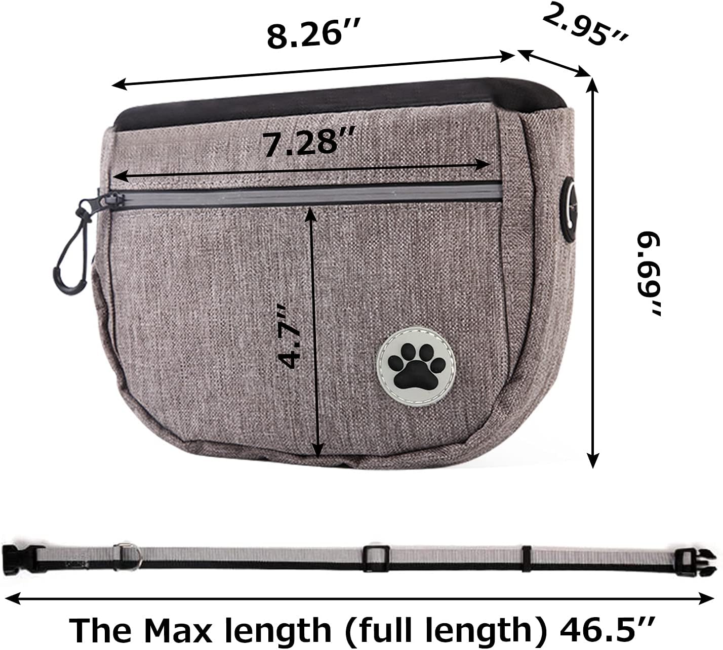 ⒉Double removable inner pockets, you can s two kinds of snacks, large capacity for long training and storage of toys.