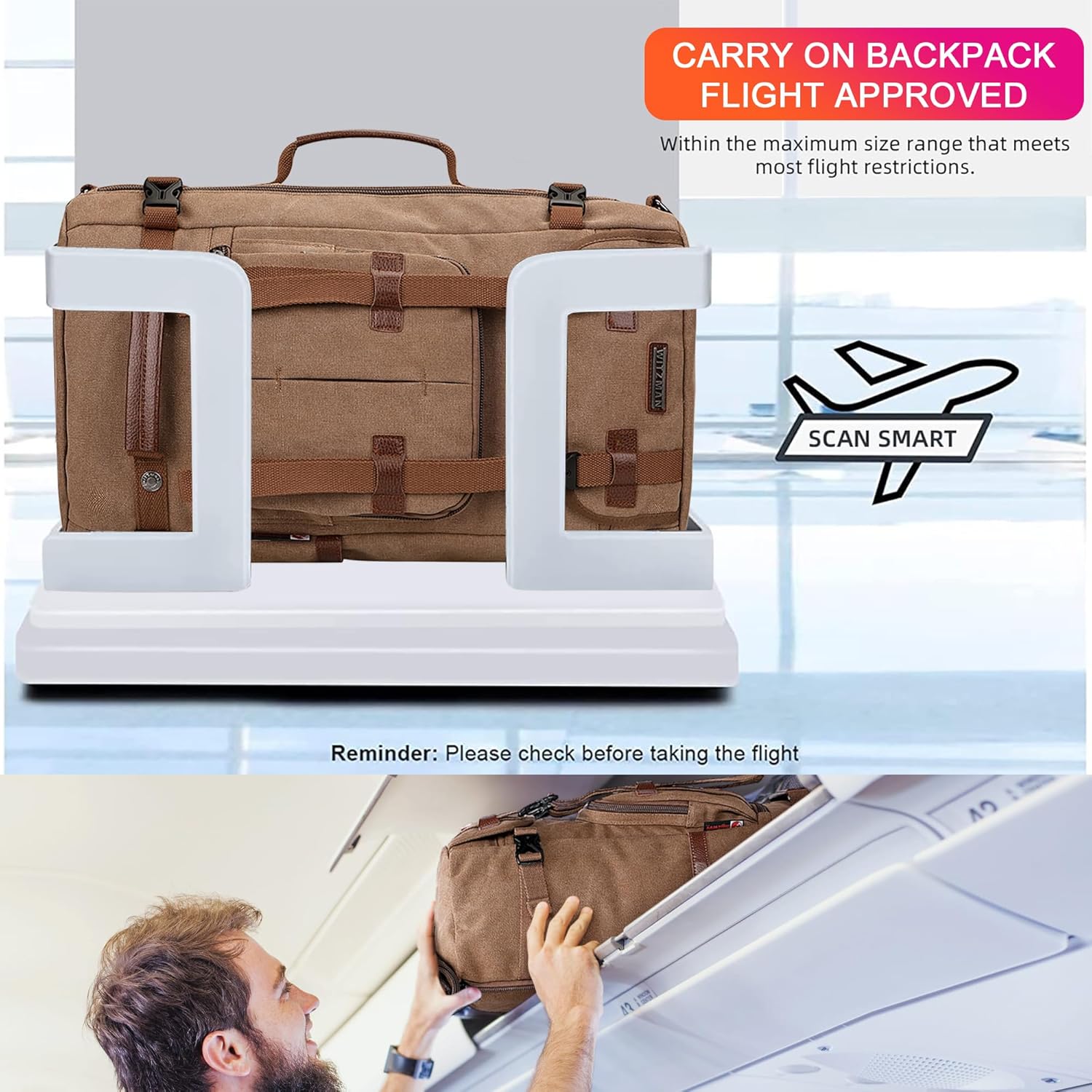 Travel smarter with the WITZMAN Carry-On Travel Backpack—a versatile and durable bag designed for modern travelers. Built with functionality and comfort in mind, this backpack easily converts into a duffel bag and is airline-approved for overhead or under-seat storage. Perfect for business trips, weekend getaways, or daily commutes, it also features a dedicated laptop compartment for devices up to 17 inches.