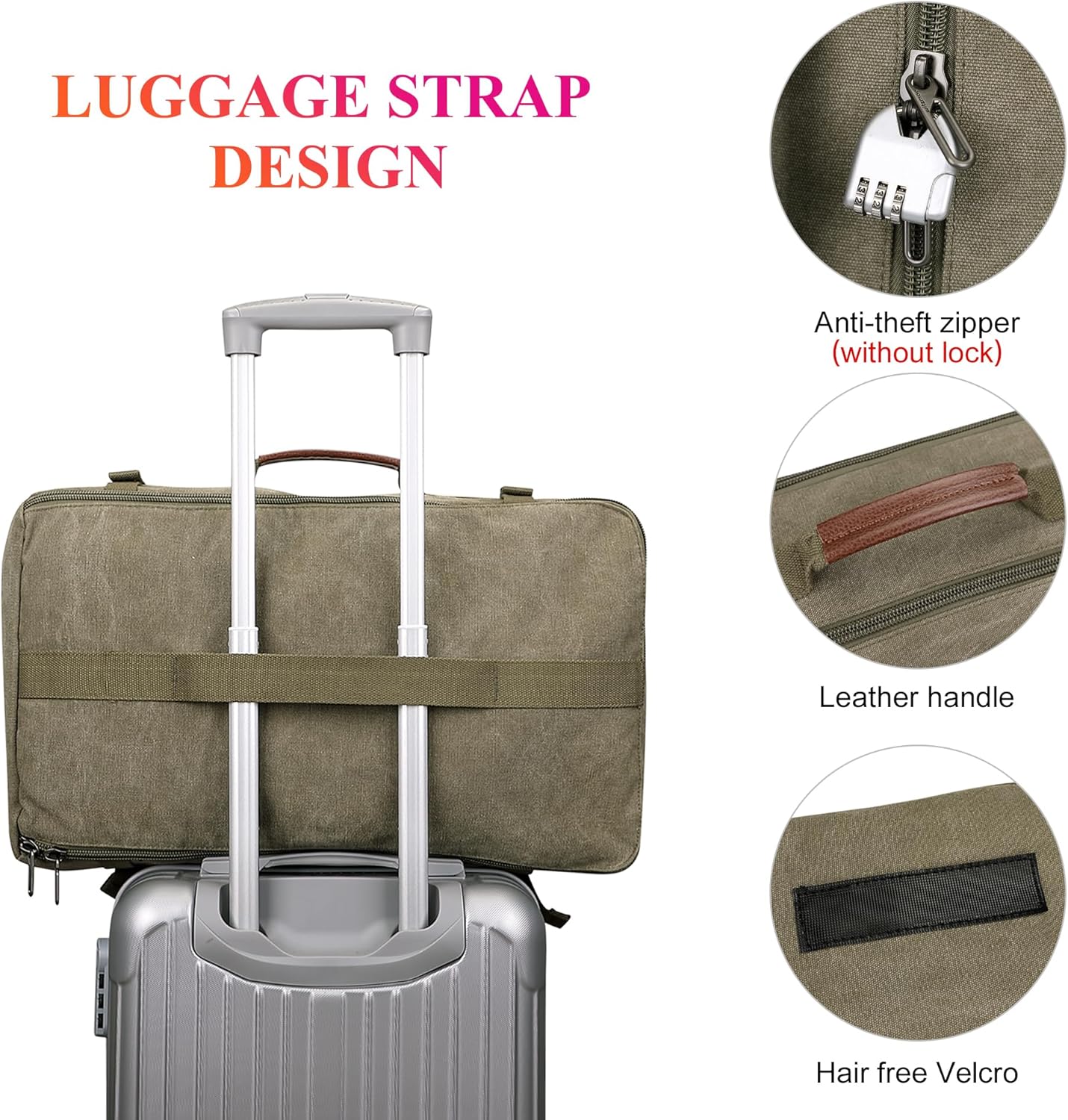 Made from high-density canvas with PU leather accents and strong metal zippers for lasting durability.