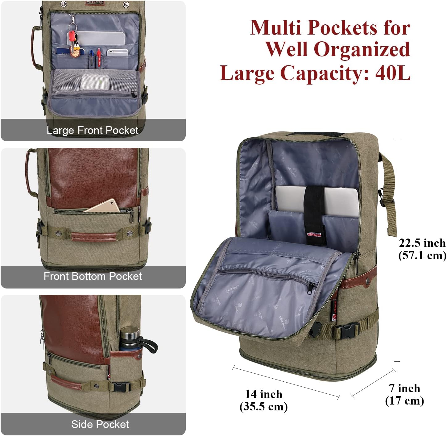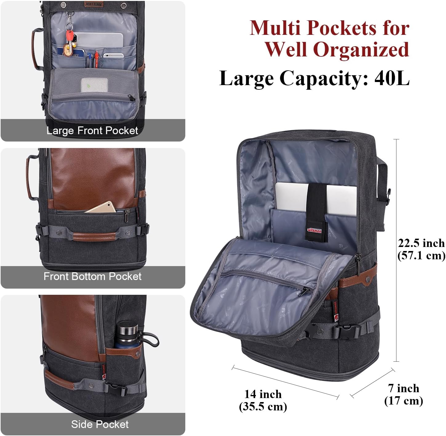 WITZMAN Travel Backpack for Men Women Carry on Luggage Backpack Canvas Rucksack Duffel bag with Shoe Compartment