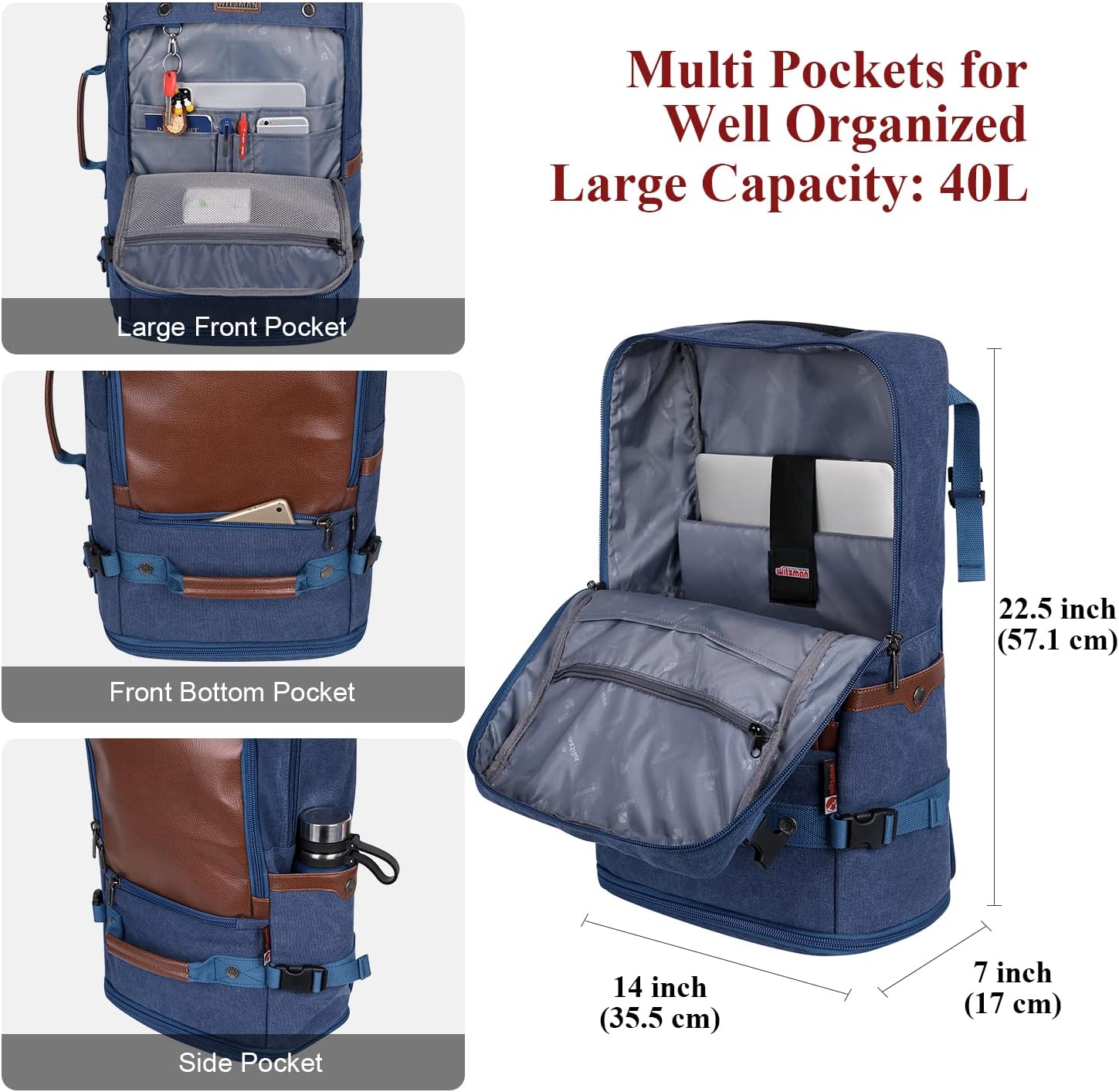 Multifunctional Carrying On Backpack: Come with an adjustable and removable shoulder strap, can be used as a duffel bag.Good choose for a travel backpack, laptop backpack for men, work backpack, office work bag for men and women.