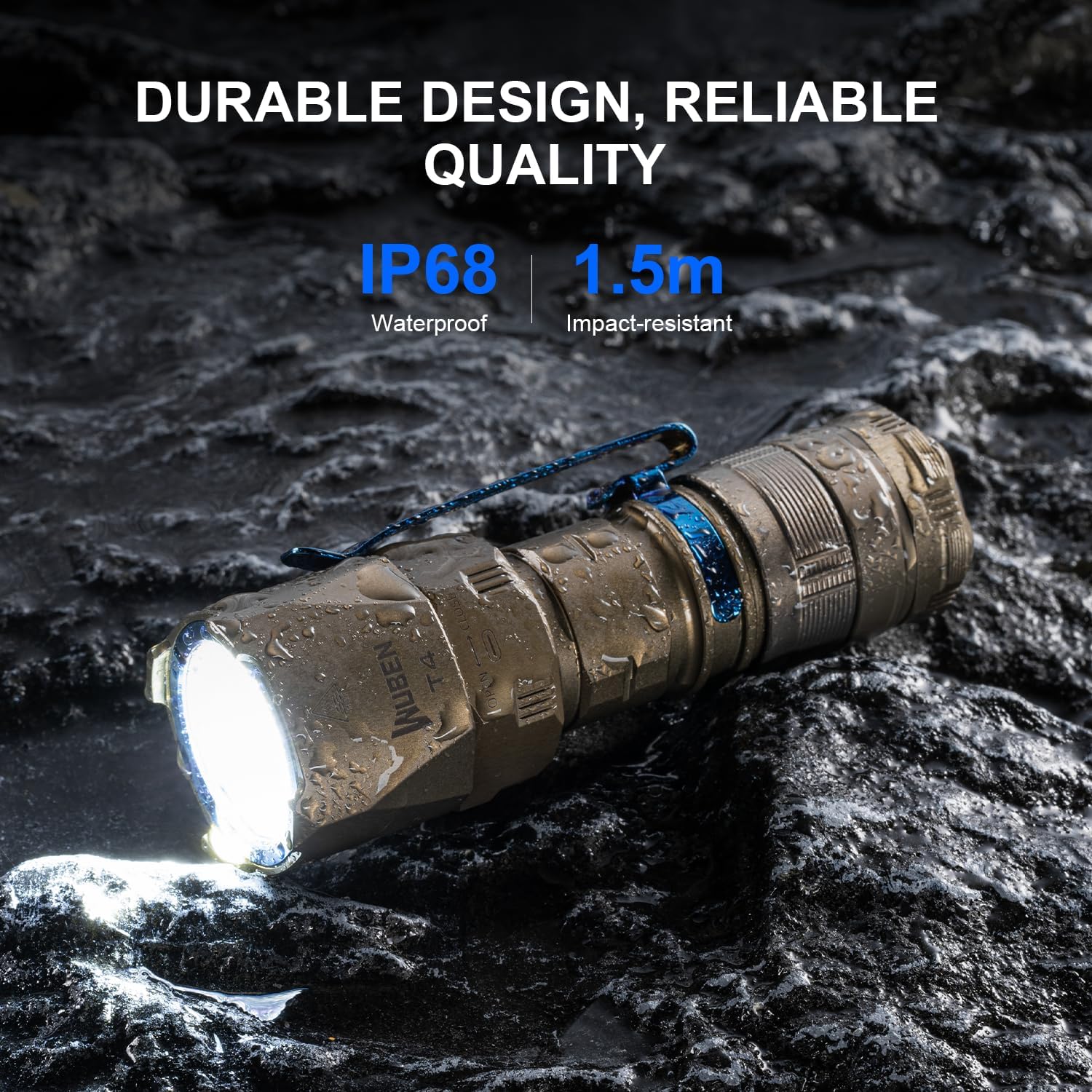 • TACTICAL EDC BRILLIANCE REDEFINED: WUBEN T4 is a fusion of tactical prowess and stylish design in an EDC flashlight, reimagining the realm of everyday tactical carry. This tactical flashlight can project a bright beam reaching up to 401 meters with an impressive 850 lumens. Whether you're exploring urban landscapes or venturing into the wilderness, the small flashlight ensures you see farther and clearer, thus enhancing the safety of nighttime adventures.