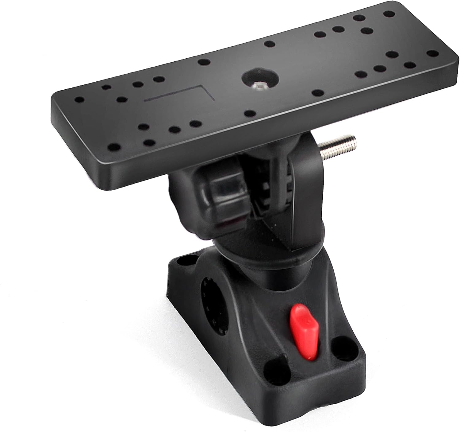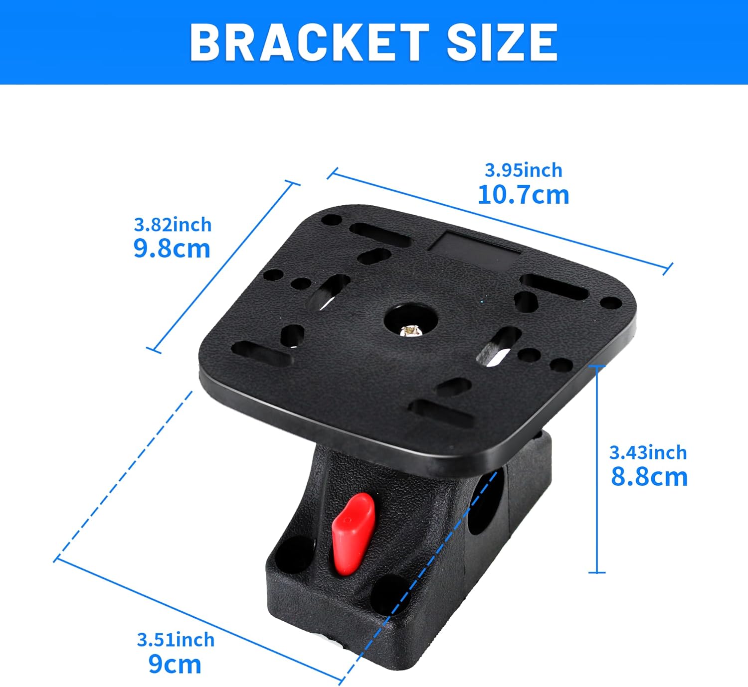 【Quick Installation and Removal】Fishfinder brackets can be quickly and easily installed and removed by simply pressing and holding the red button on the bottom and inserting or removing the bracket tray. The base is screwed in place to provide durability and stability.