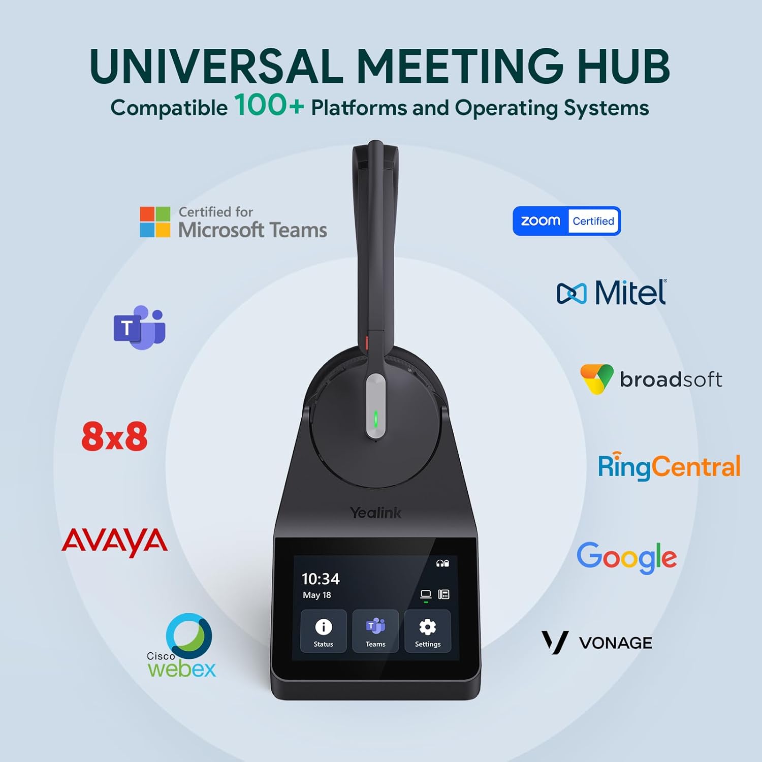 Yealink WH64 Pro DECT& Bluetooth Wireless Headset, 3.5" Touchscreen Teams, Mono Headphones, 606 ft Range,3X Noise Cancelling Mic, 26H Calls Office Work Single Ear Headsets for DeskPhone,Laptop,Mobile