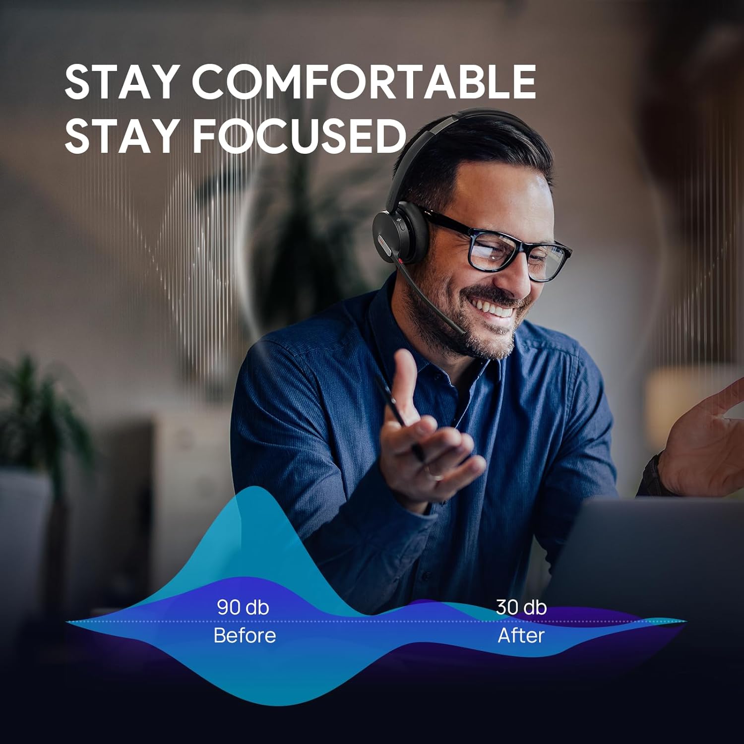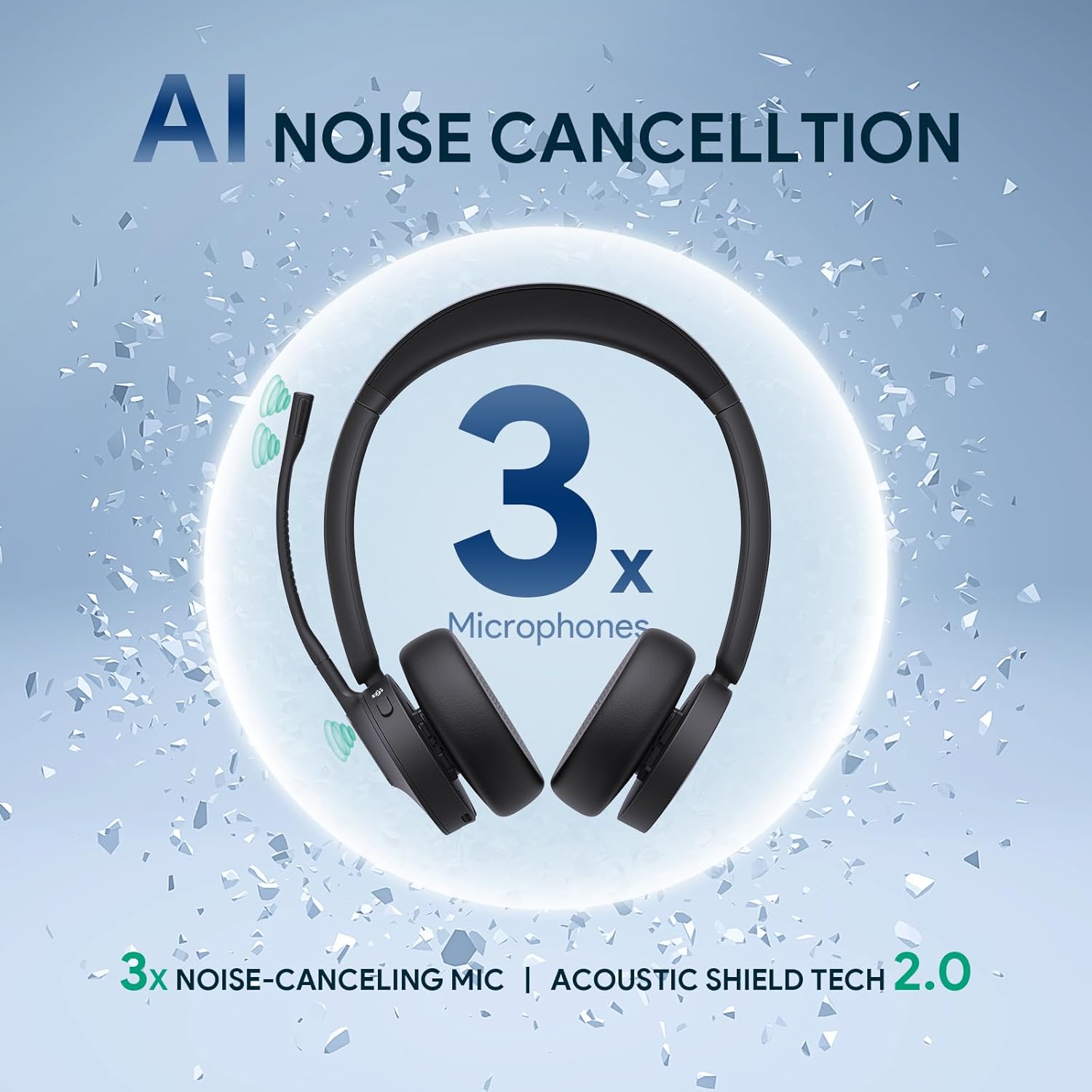 - AI Noise-Canceling Bluetooth Headphones: 3x noise-canceling mic and Acoustic Shield Tech 2.0, create a quiet zone in chaos. Call control, busylight, quick mute setting, base ringtone to achieve immersive work.