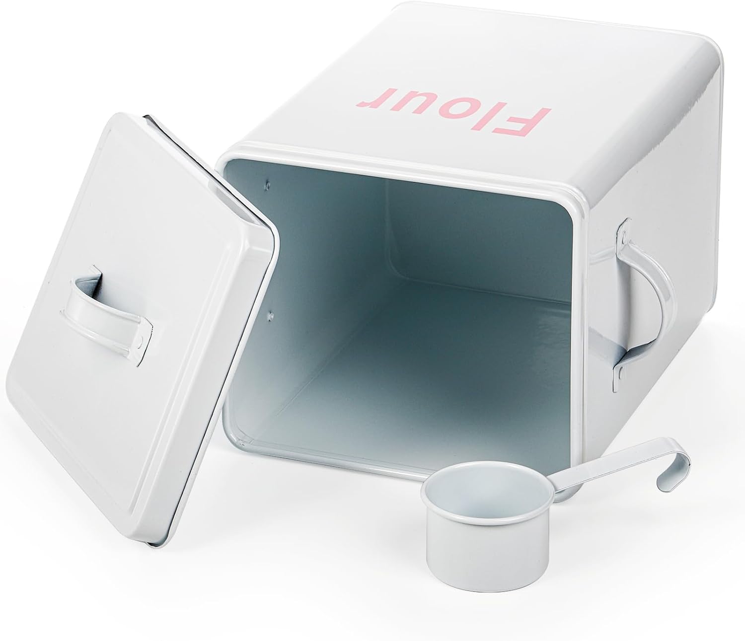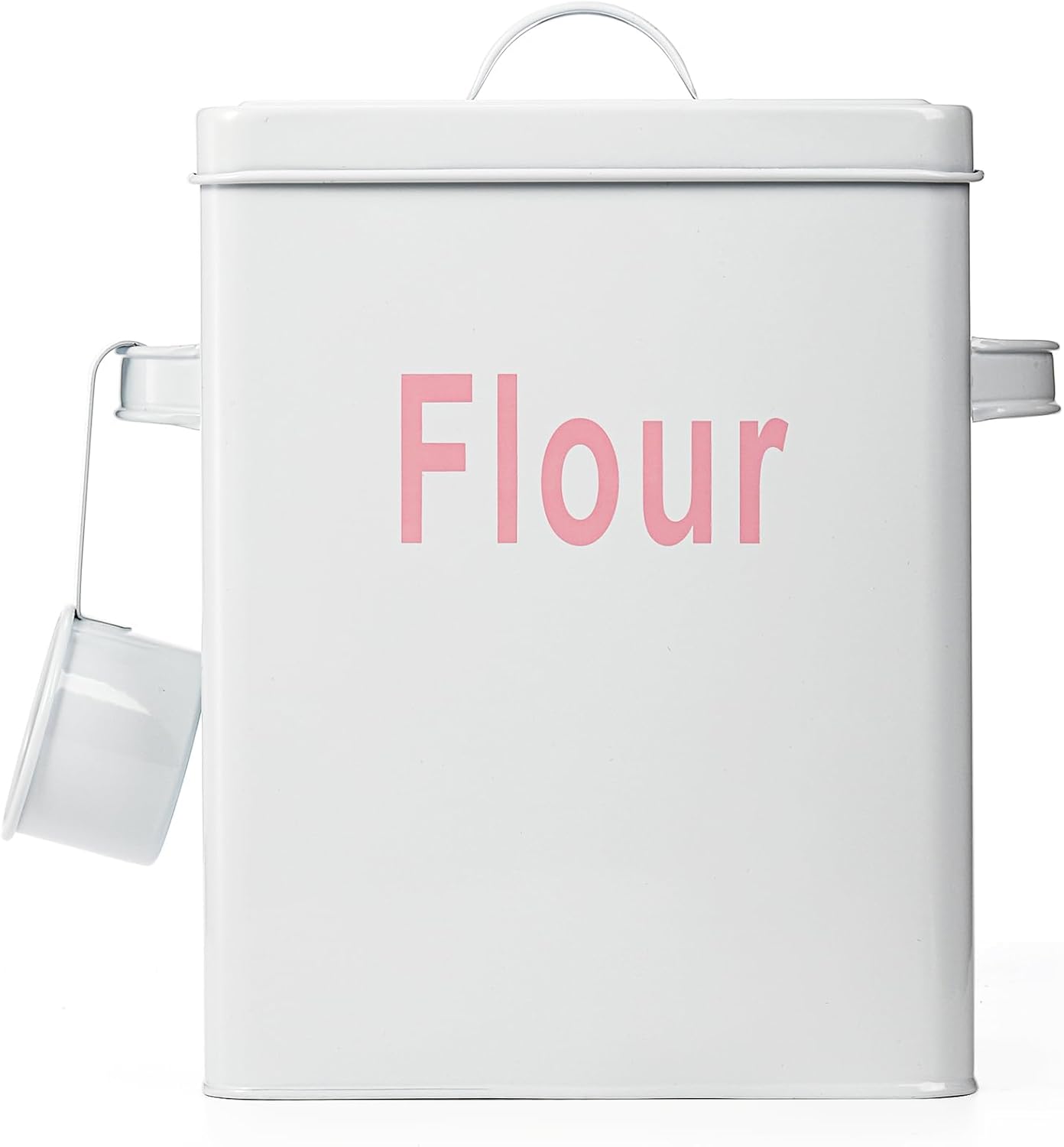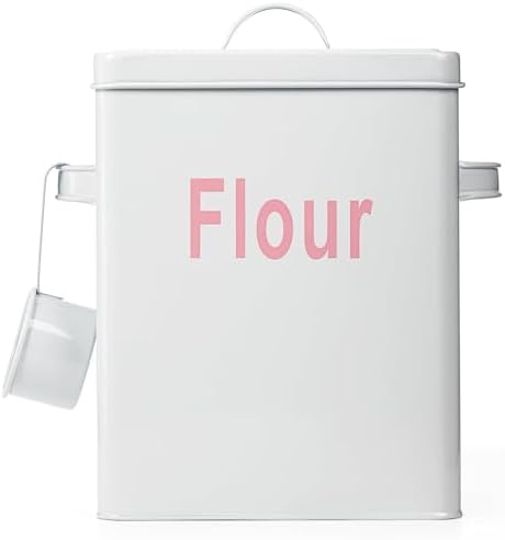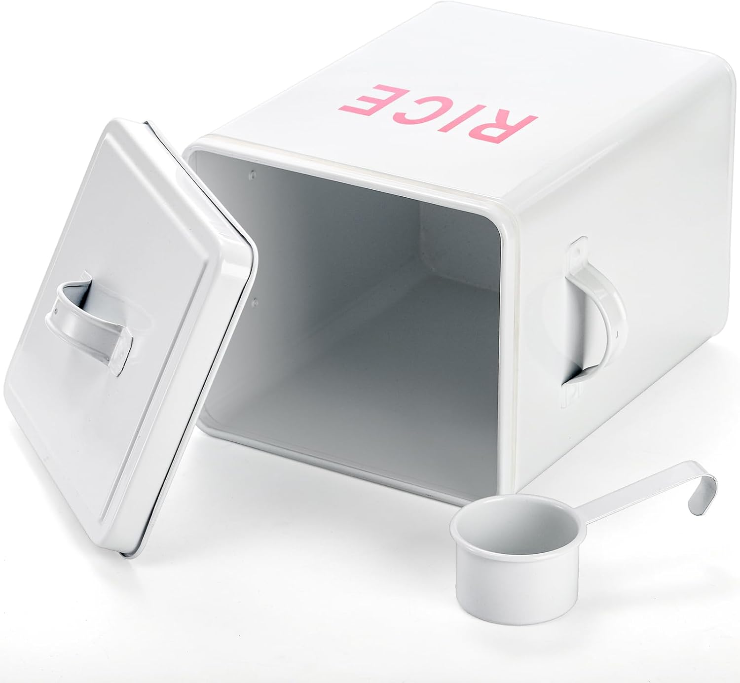 YOUEON 10 Lbs Metal Rice Storage Container, Square Rice Canister with Lid and Measuring Scoop, Countertop Sealed Food Storage Container for Cereal, Beans, Pet Food, WhitePL17-B097MV3YBZ