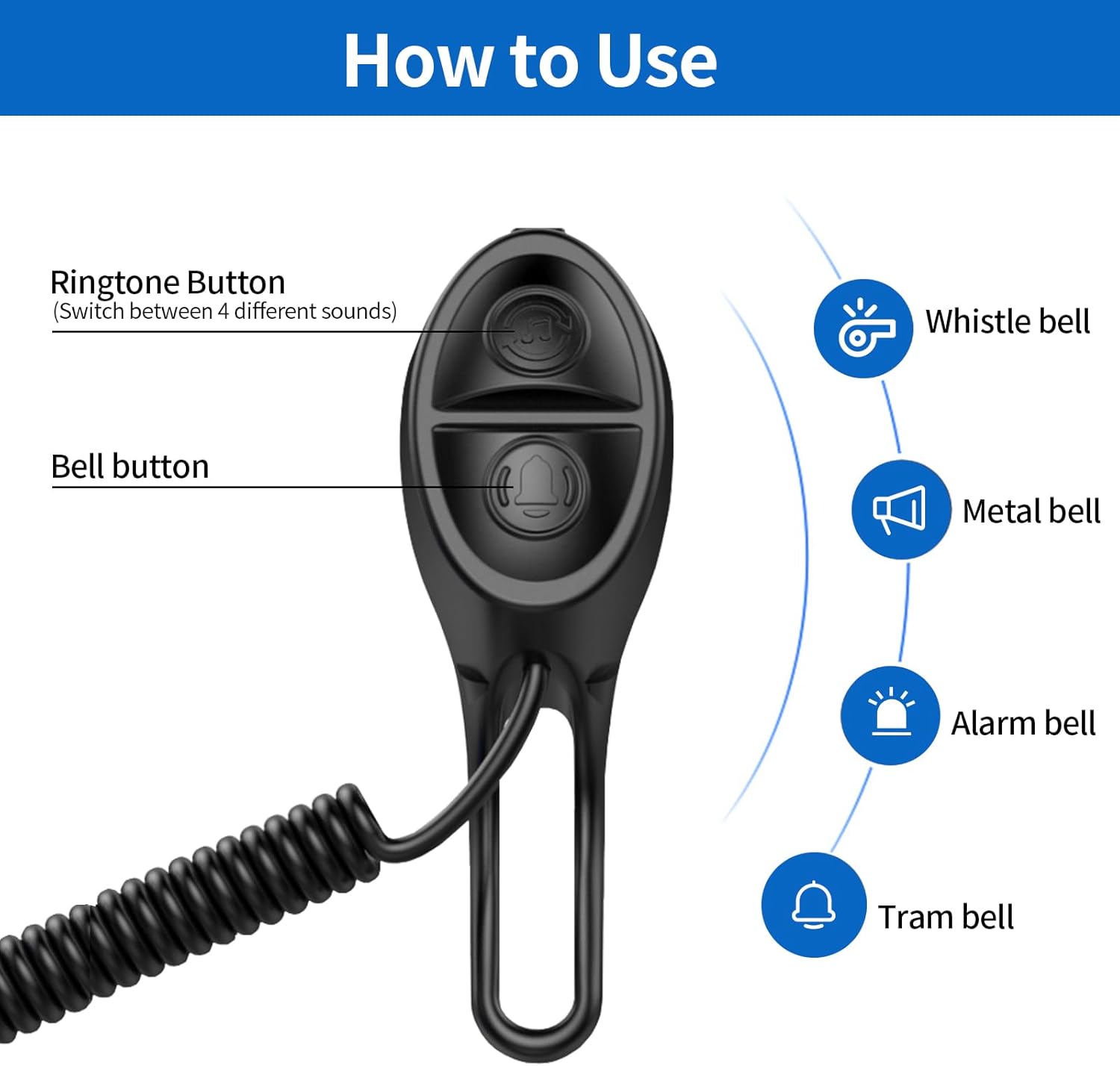 • 【Multiple ringtones】This bike horn has 4 sound modes, you can switch ringtones with the push of a button, and there is always a ringtone that suits the environment you're in.