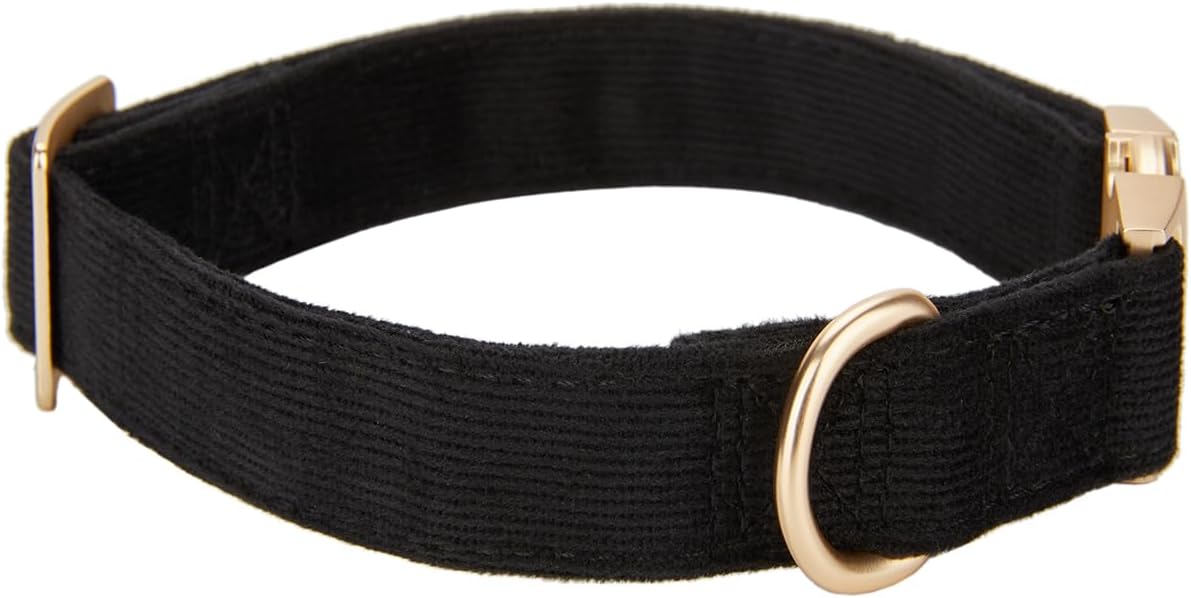 YUDOTE Soft Cotton Dog Collar with Metal Buckle Adjustable Heavy Duty Comfy Corduroy Collars for Small Medium Large Dogs,Black,Small