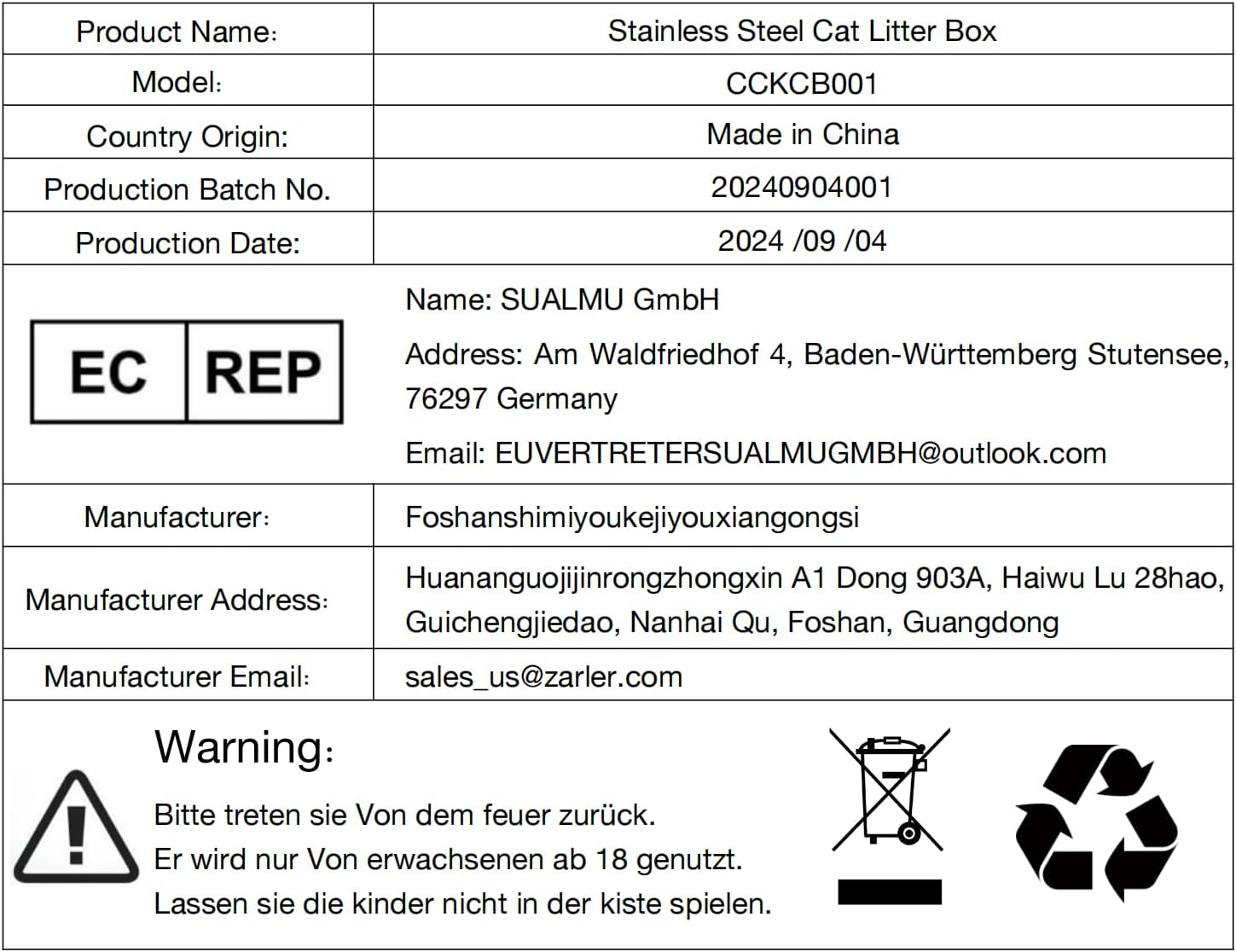- 【Easy Cleaning for Odor-free Space】: Nonstick surface of the litter box with lid makes cleaning a piece of cake, as waste slides out effortlessly with a quick rinse of water. Unlike plastic litter box, the stainless steel steel box does not absorb stains or odors, maintaining a fresh and hygienic environment for your cat