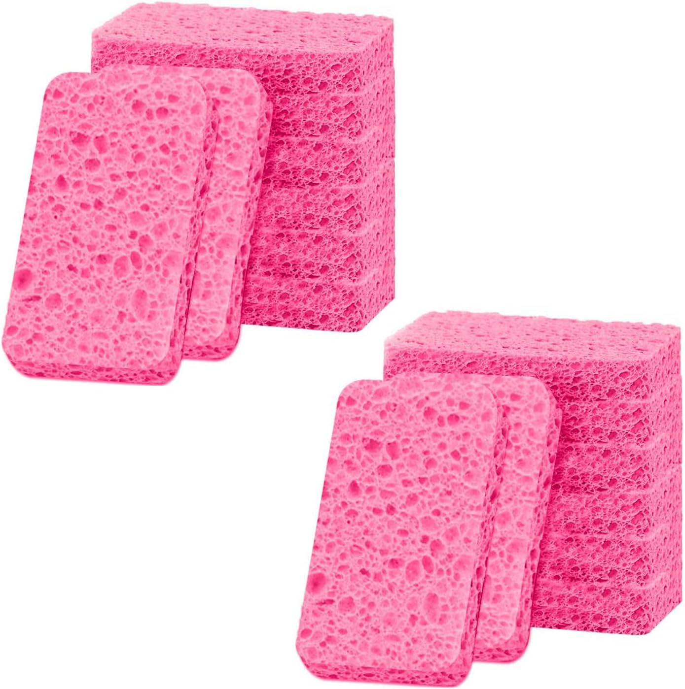 12 - Pack Non-Scratch Scrub Sponges - Sponges for Dishes and Washing Dishes, Cleaning Sponges for Kitchen Home Bathroom Cars, Funny Cut-Outs DIY for Kids (Pink)