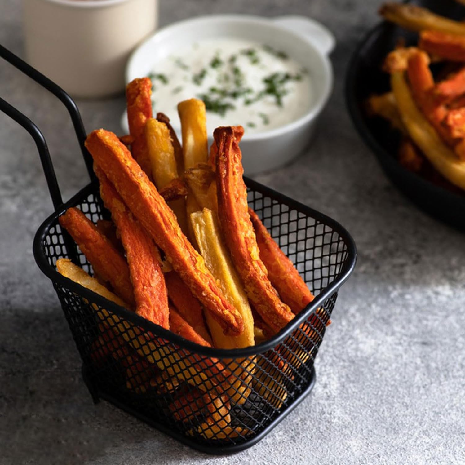 Spacious and Versatile: With dimensions of approximately 10 x 13 x 8.3cm for the basket, these baskets offer ample space to hold a variety of foods. They are perfect for storing and serving items like French fries, onion rings, chicken nuggets, vegetables, popcorn, and more. The size is ideal for both small and medium-sized snacks, making them versatile for different occasions.