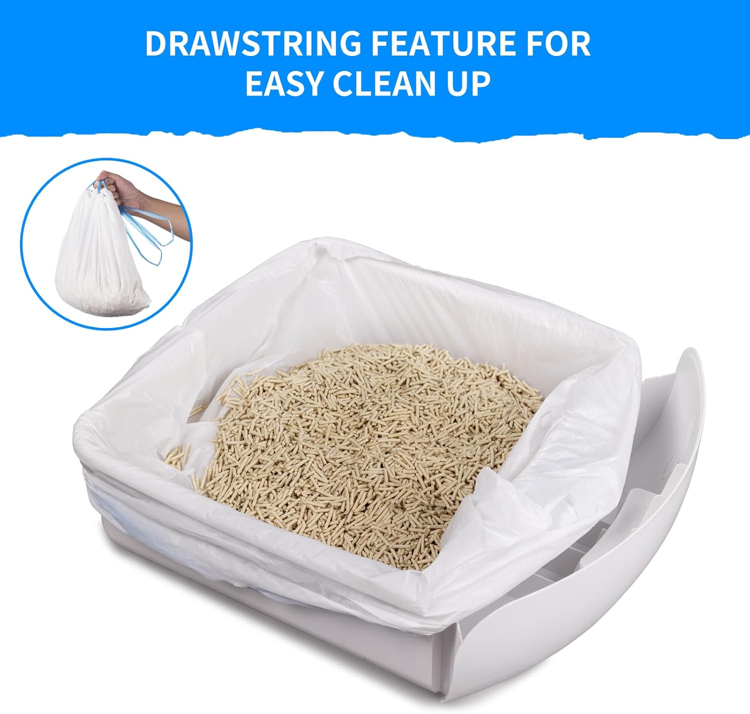 • Convenient Drawstring Design: Our automatic cat litter box bags have convenient drawstring closures that prevent the litter from exposing, and the smell overflows. The drawstring design also helps to hold as much trash as possible. The drawstring allows for quick and effortless closure by simply pulling and tying it, eliminating the need for knots or complex tying methods, provide you with a comfortable use experience.