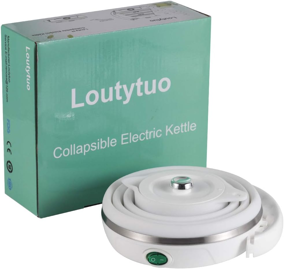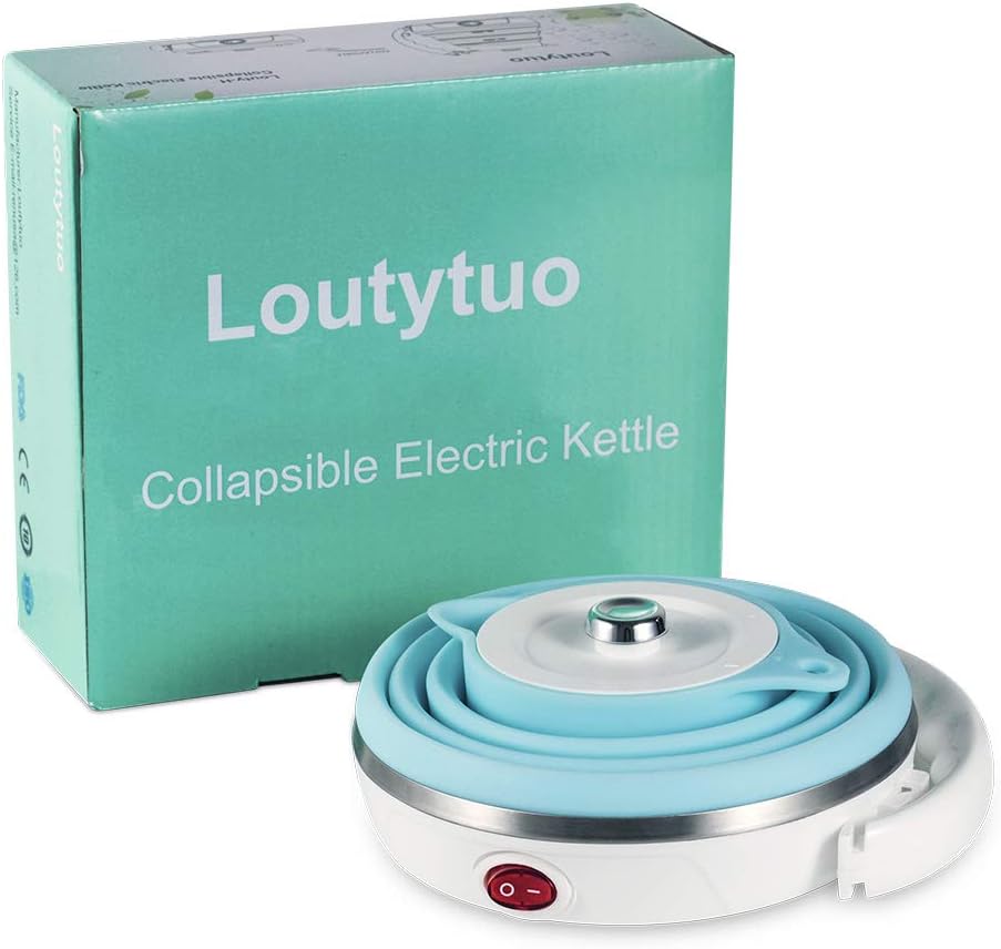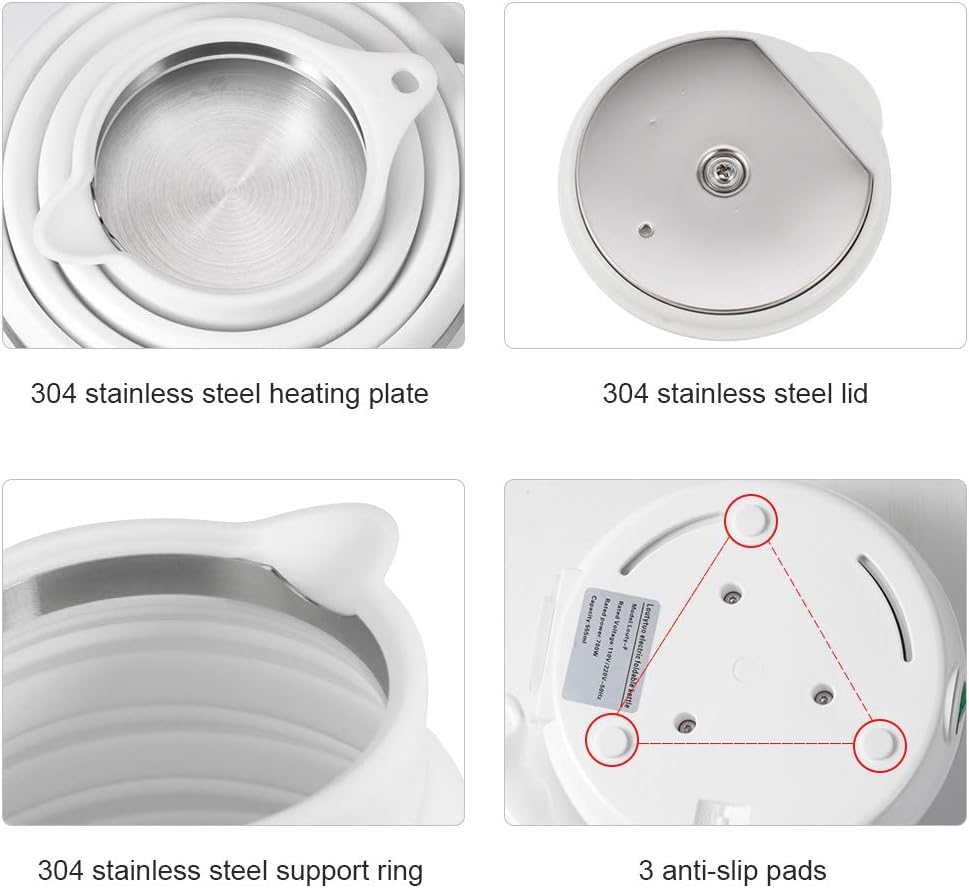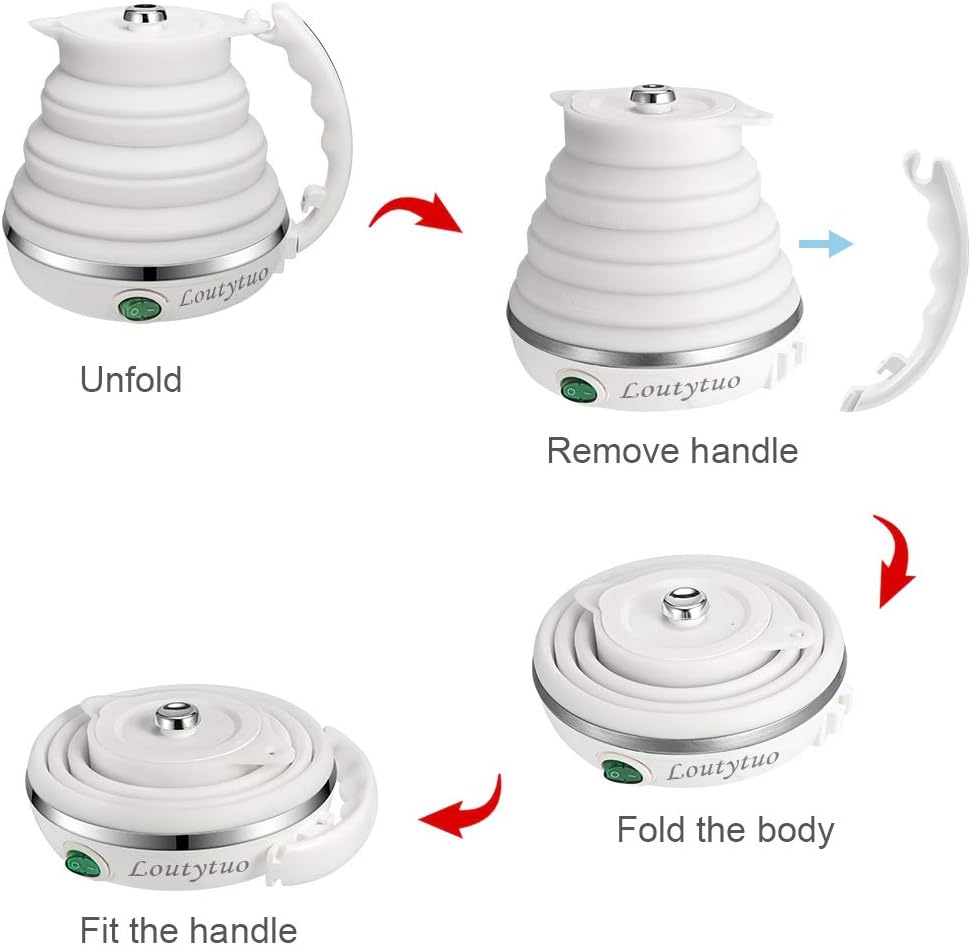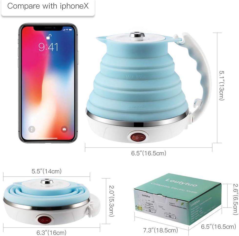 120V 555ML Ultrathin Travel Foldable Electric Kettle with Separable Power Cord and Handle, Boil Dry Protection, Food Grade Silicone