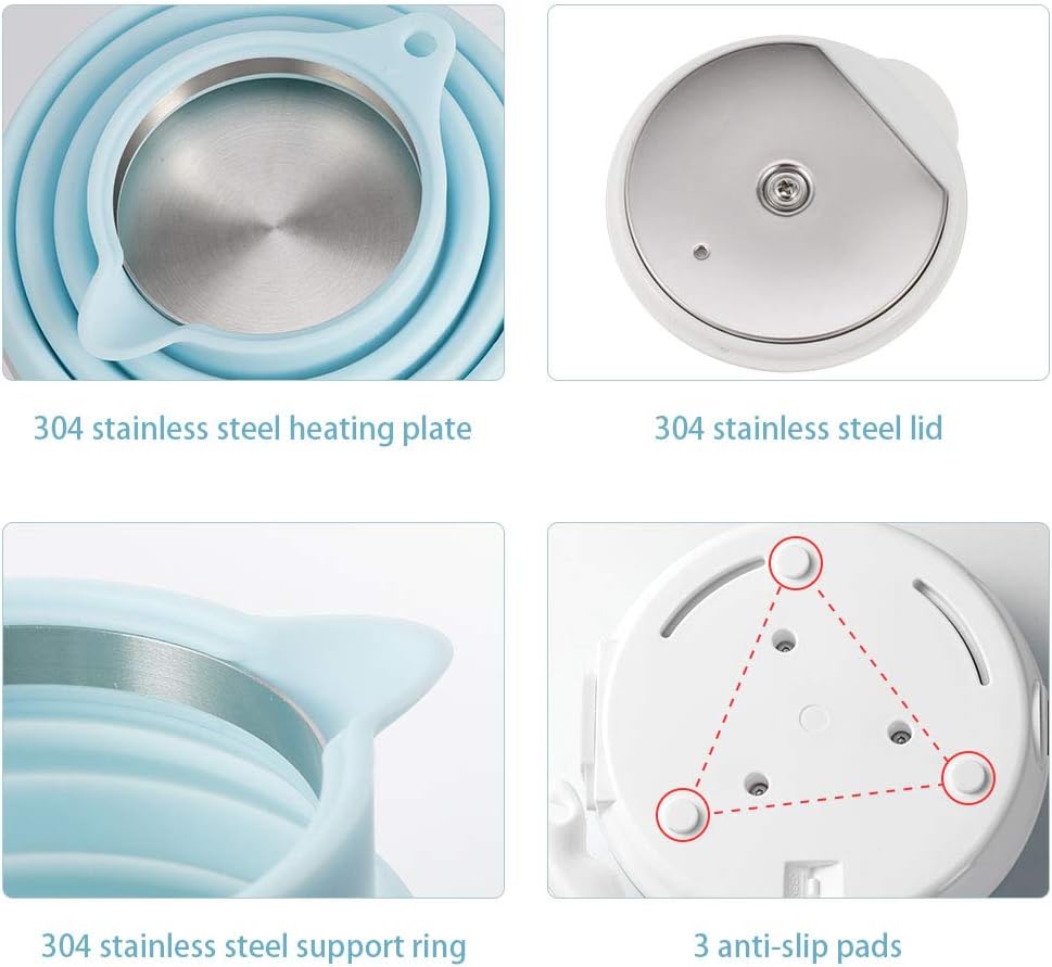 120V 555ML Ultrathin Travel Foldable Electric Kettle with Separable Power Cord and Handle, Boil Dry Protection, Food Grade SiliconePL17-B08DQR5ZBQ