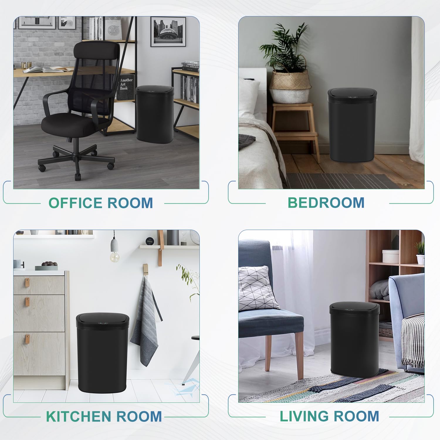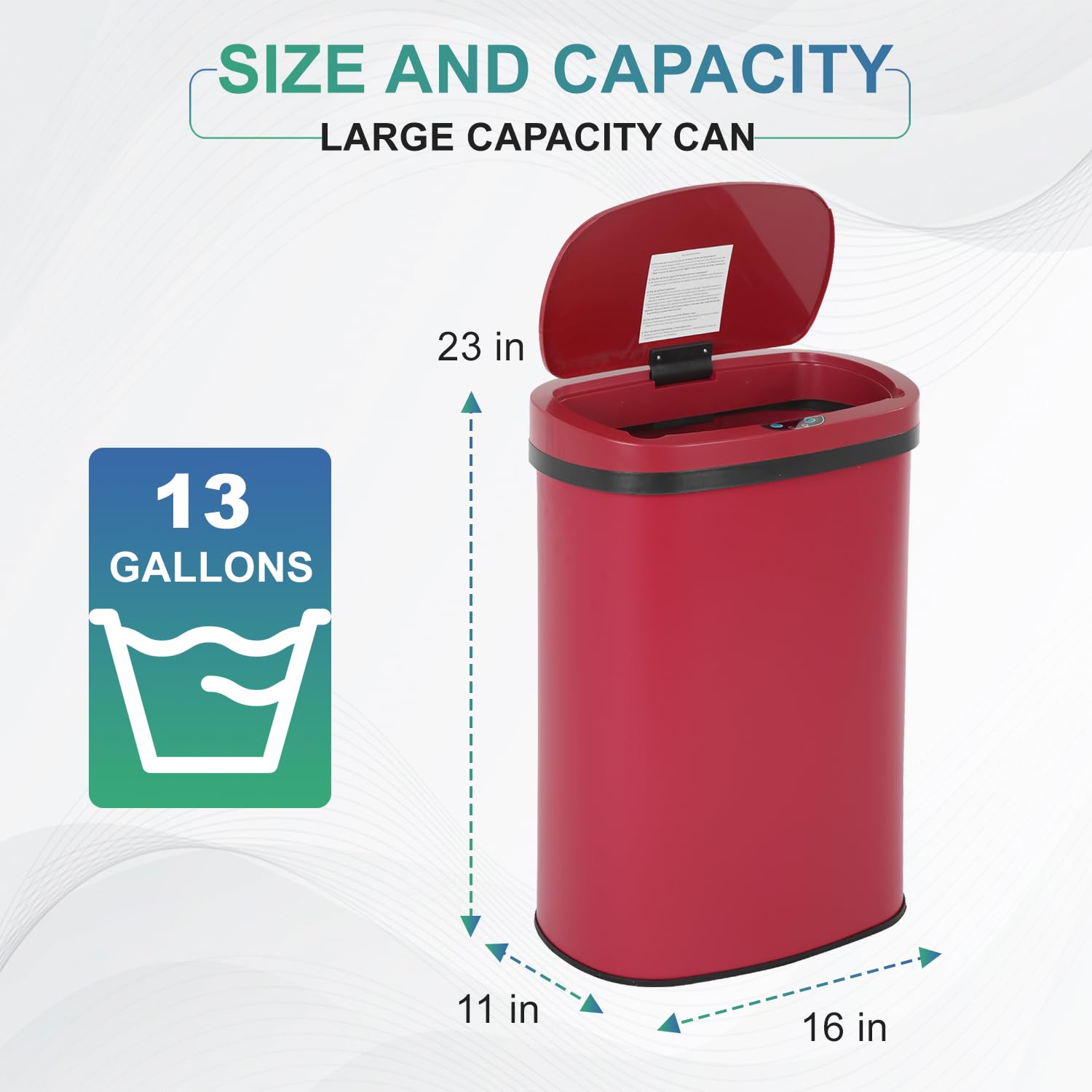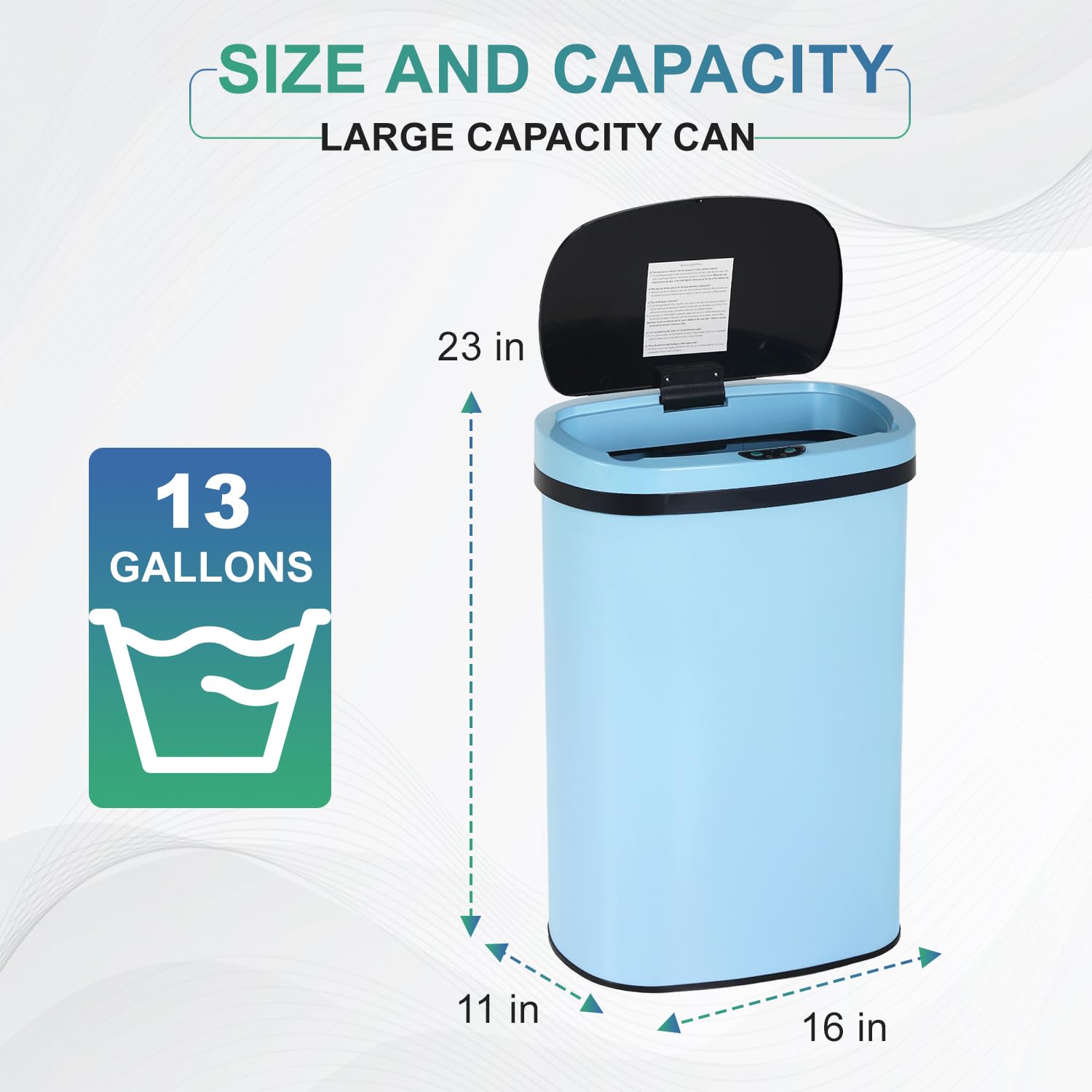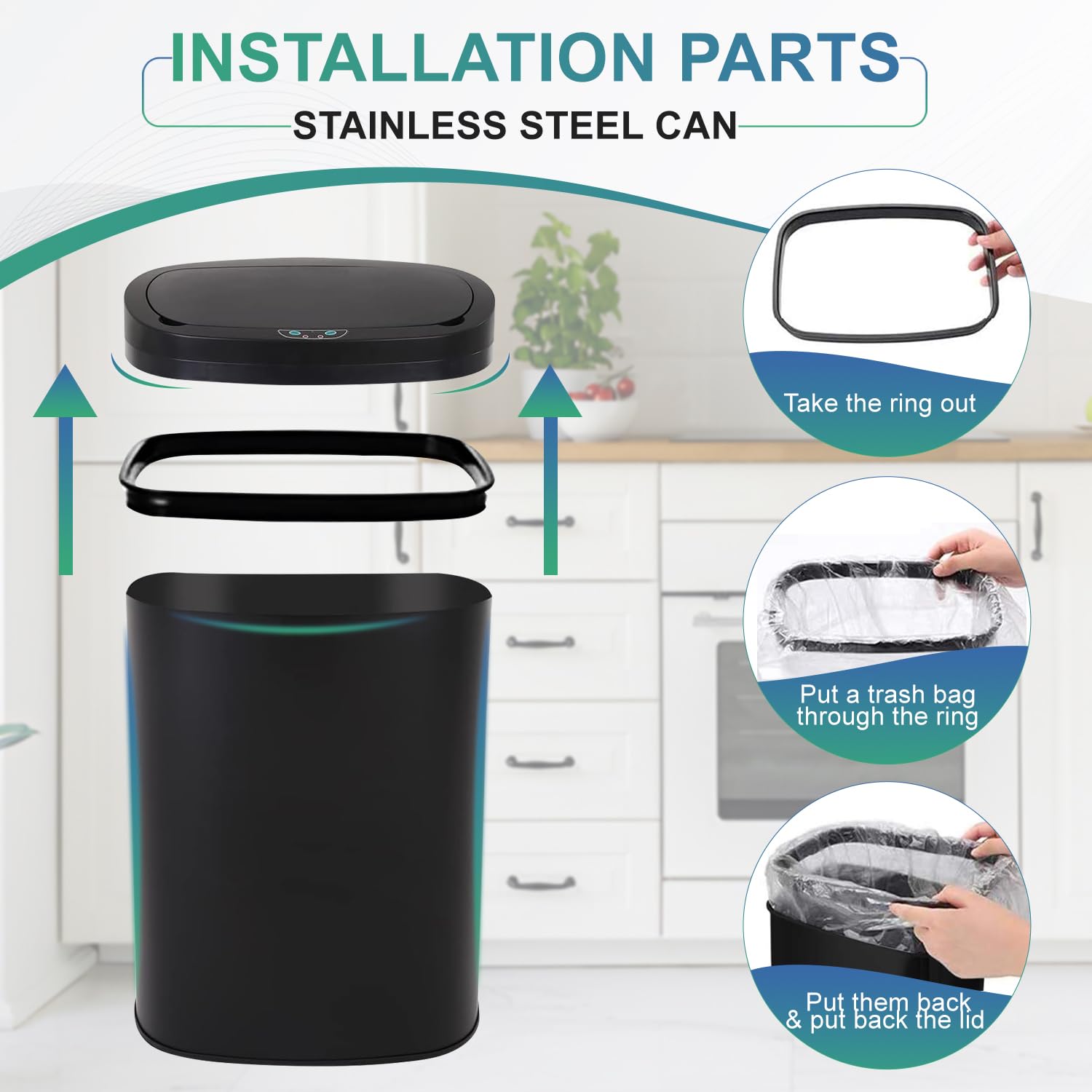 13 Gallon Sensor Garbage Can Stainless Steel Kitchen Garbage Can with Lid Antomatic Garbage can for Kitchen Office Bedroom Bathroom Living Room,Black