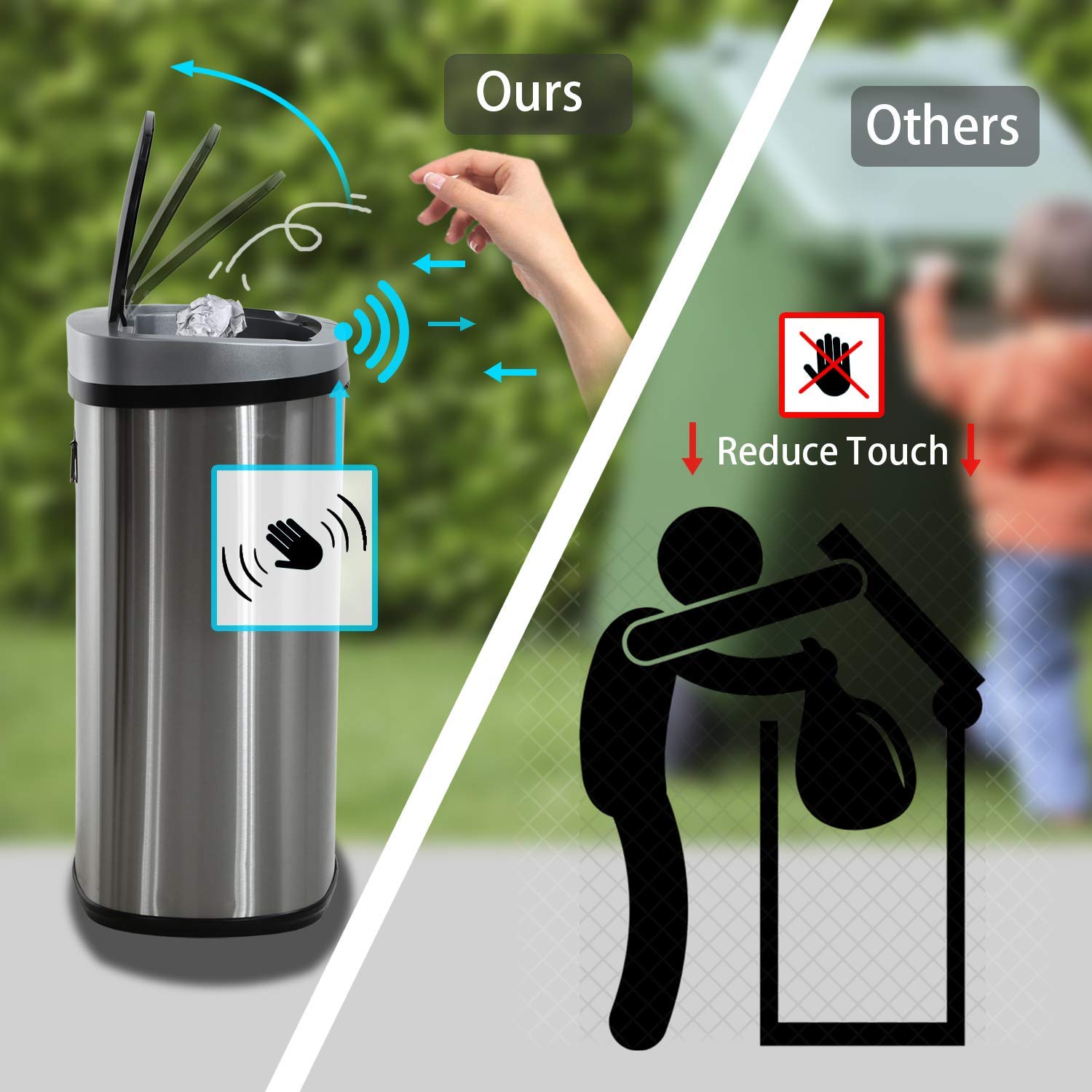 At 6 inches above the infrared panel, if you sense the OPEN button on the control panel, the lid automatically opens and will remain open until you sense the CLOSE button. You don't have to touch the automatic garbage can with your hands, so you can keep your hands clean and the sensor garbage can clean, the best of both worlds.