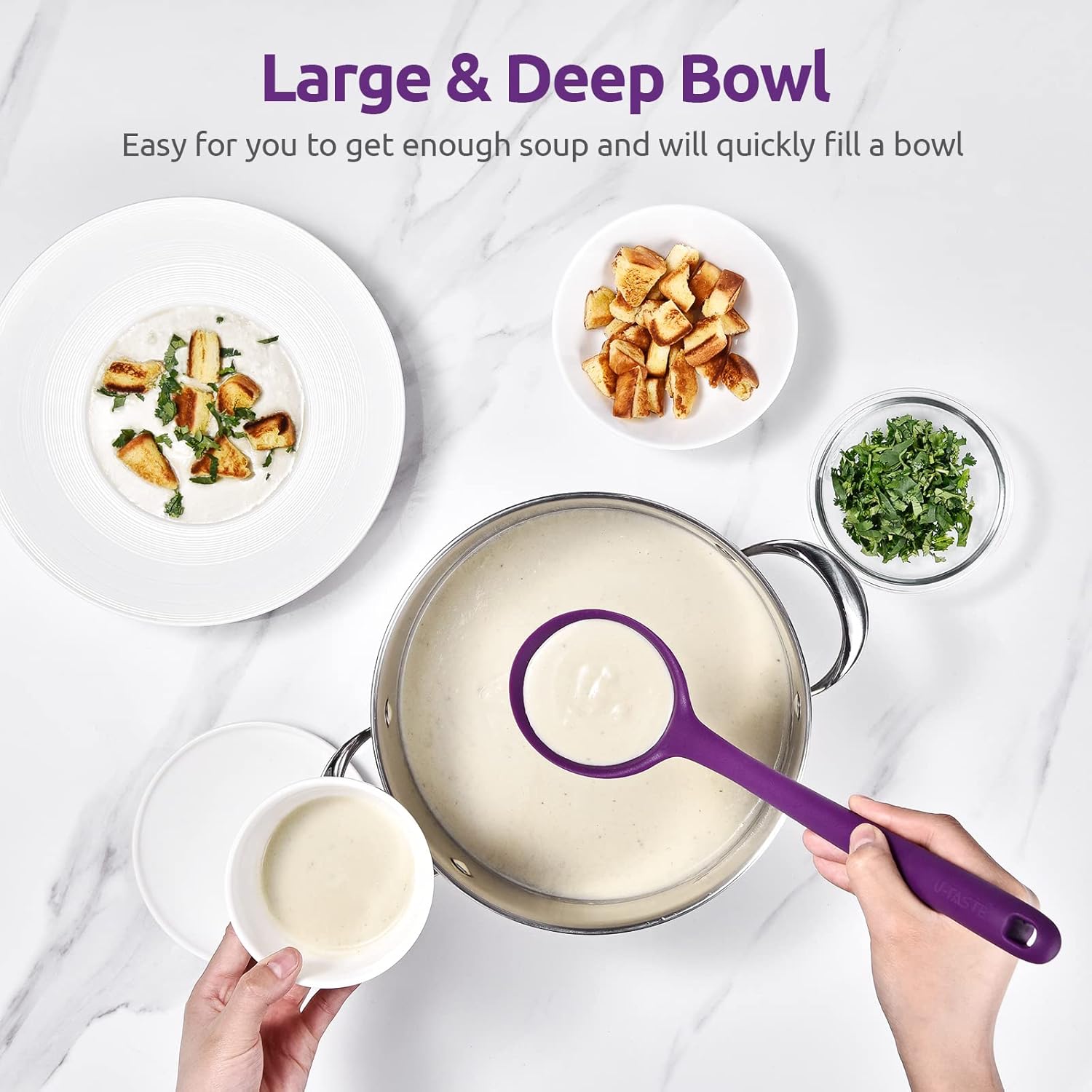13 inch Silicone Soup Ladle: U-Taste 600ºF Heat Resistant 4 oz Large Non-Stick Seamless Rubber Kitchen Deep Serving Spoon with Non-Slip Solid Long Handle for Cooking Sauce/Stews/Gravies/Chili(Purple)