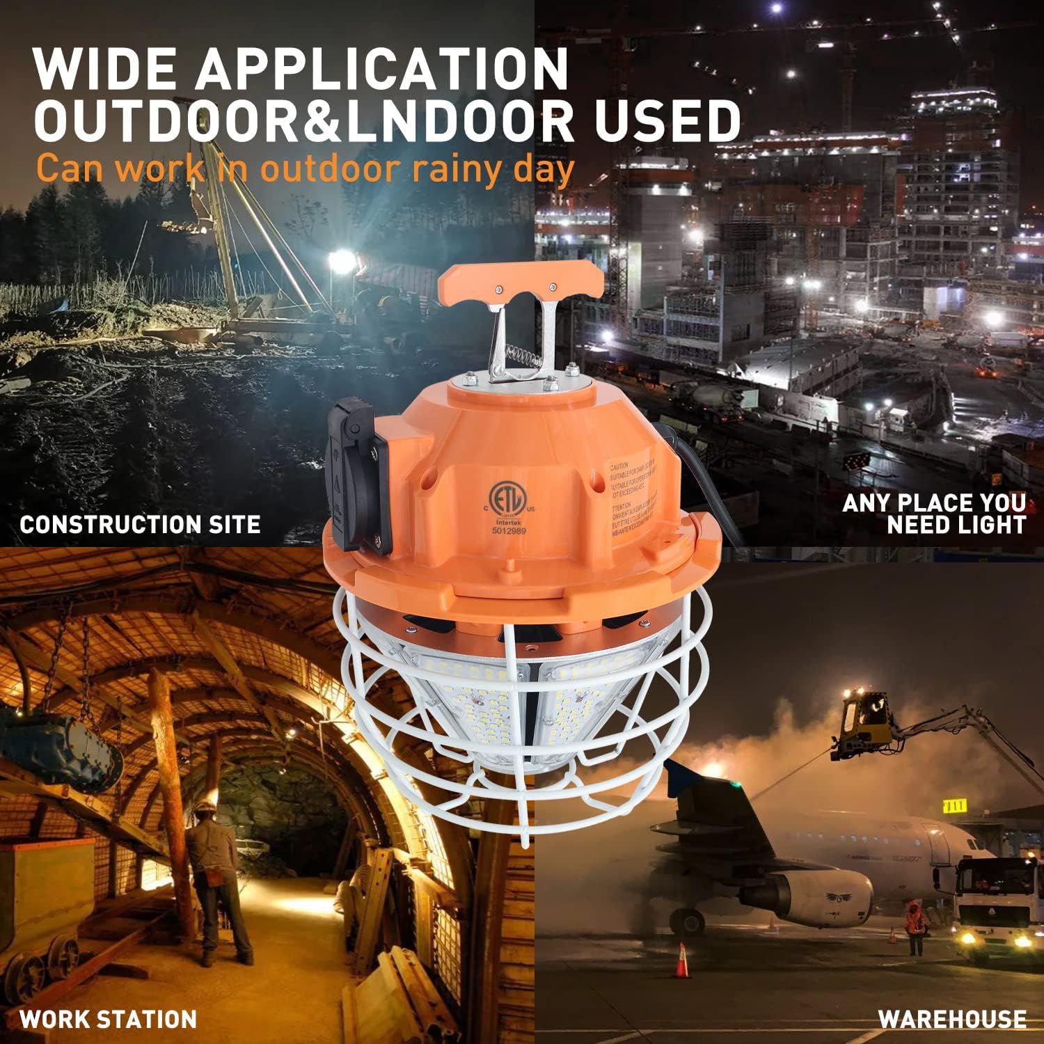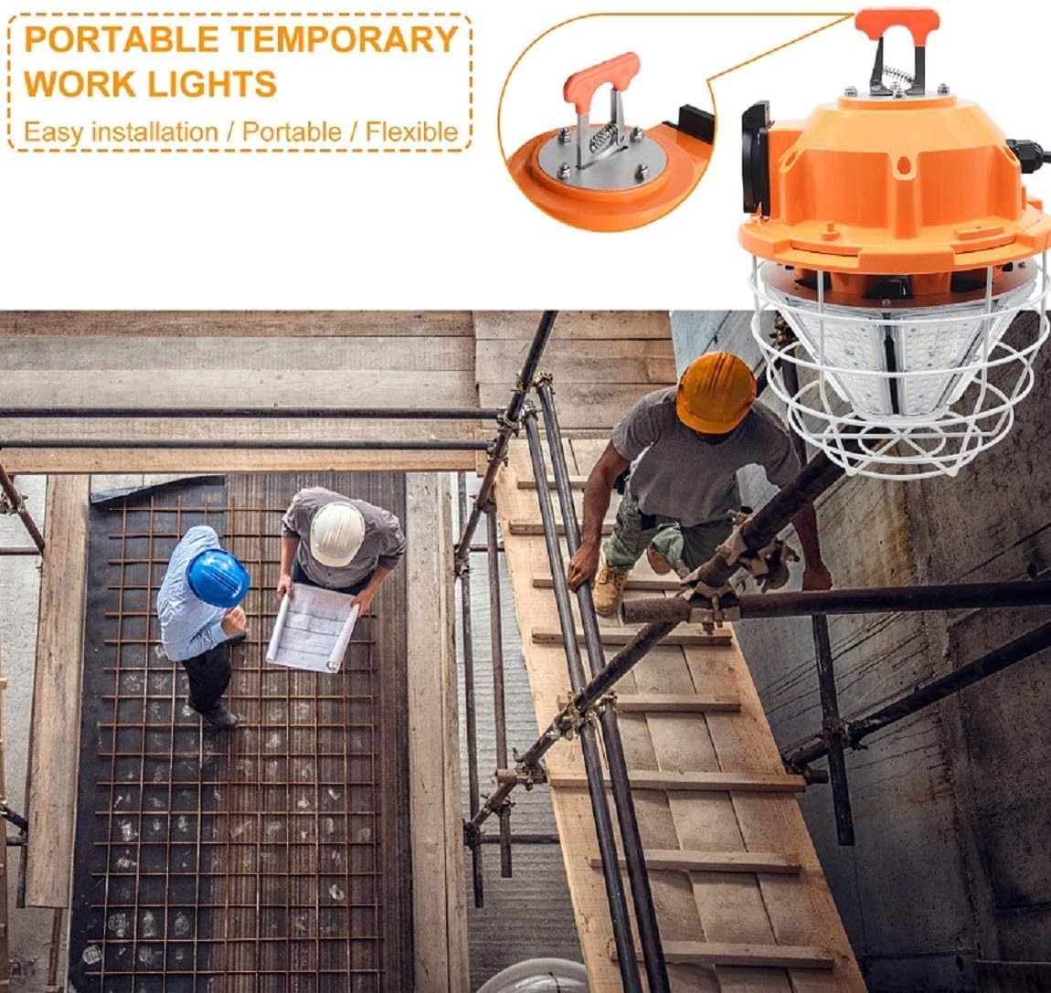 Portable & Easy to Use: Equipped with a top snap-lock hook for comfortable carrying and quick hanging, this lightweight temporary work light can be used as a portable lamp or a high bay light, meeting diverse job site needs.