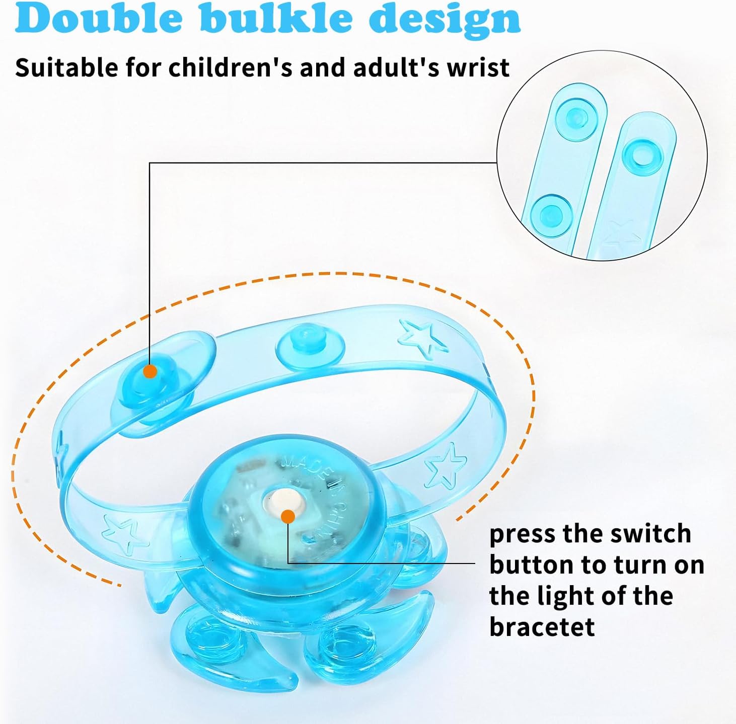 - 【High-Quality Materials】The wrist strap of this light up bracelet is smooth, soft and suitable for skin contact. possible to be worn by both adults and kid. The wrist buckle closes firmly, which won't loose when the kid play.