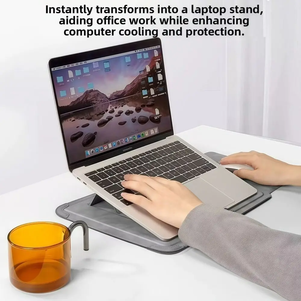 Crafted from durable, water-resistant PU leather, it shields your laptop from bumps, dust, and accidental spills. The slim and lightweight profile fits easily into backpacks or briefcases, while the foldable stand design provides ergonomic support that helps reduce neck and wrist strain during long working sessions.