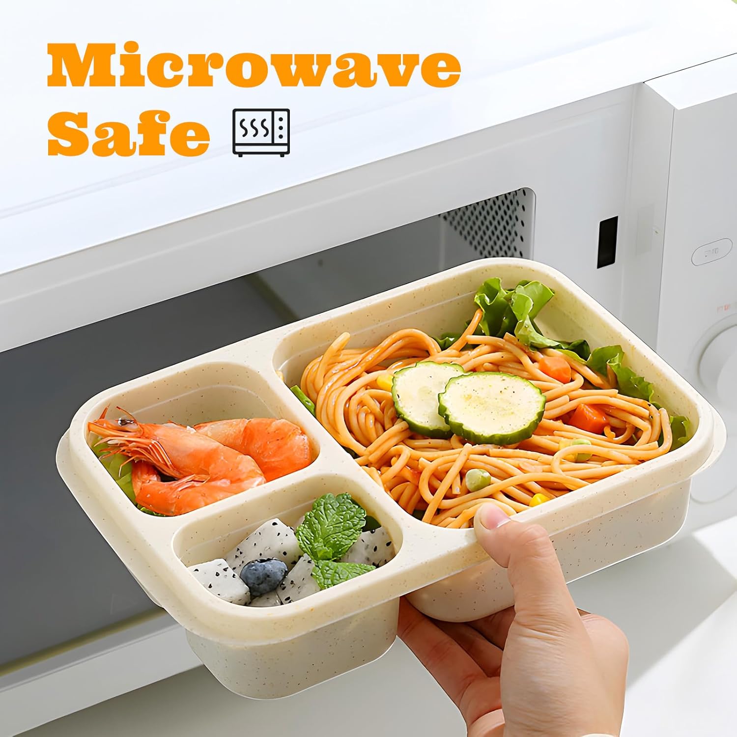 4 Pack Bento Box Lunch Boxes, BPA-Free Reusable Snack Box Containers for Kids Adults, 3 Compartment Meal Prep Containers with Lids, Stackable for School, Work, and Travel (Multicolor-3Compartments)