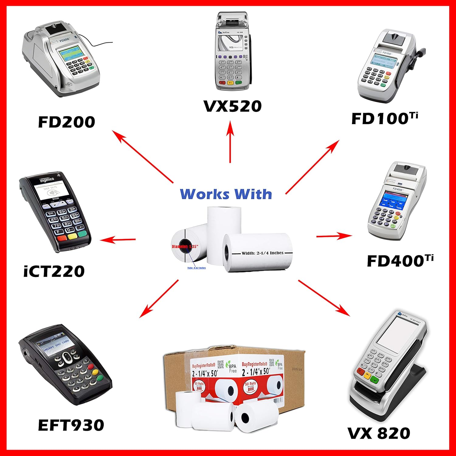 (50 Rolls) 2 1/4 x 50 Thermal Paper Receipt Rolls 2.25 x 50 ft POS Cash Register fits all Credit Card Terminals