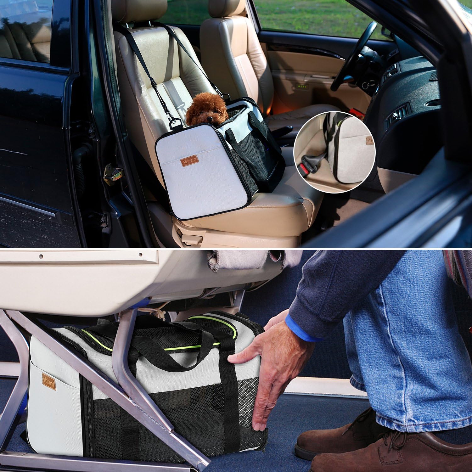 - Travel carrier for medium cats and puppy: AIRLINE APPROVED;can be secured in car seat and fastened on luggage